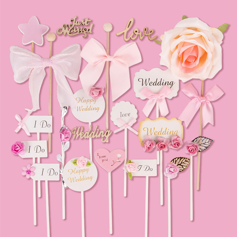 粉色甜品台装饰订婚婚礼推推乐贴纸纸花I DO慕斯杯插件布丁杯绑带 - 亲亲熊派对 YUN