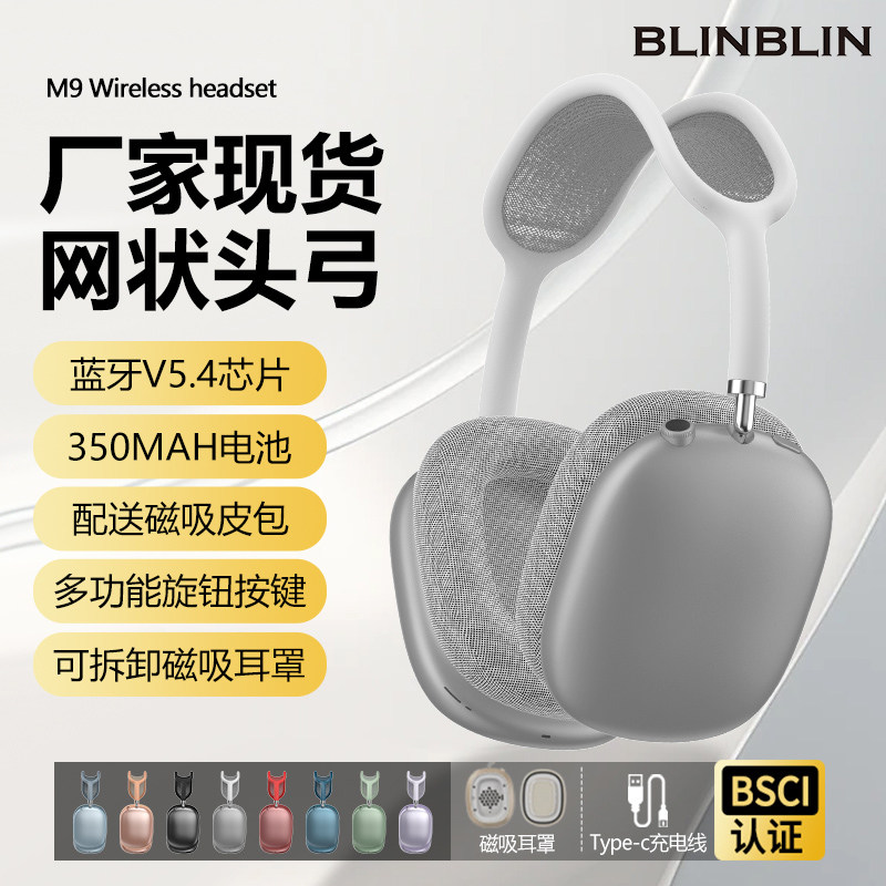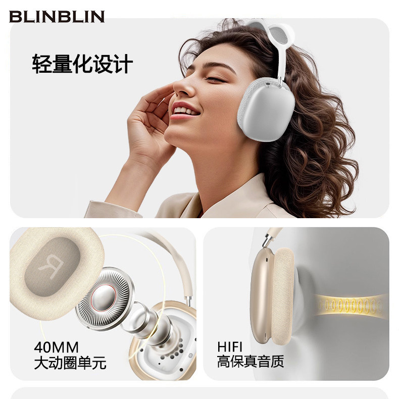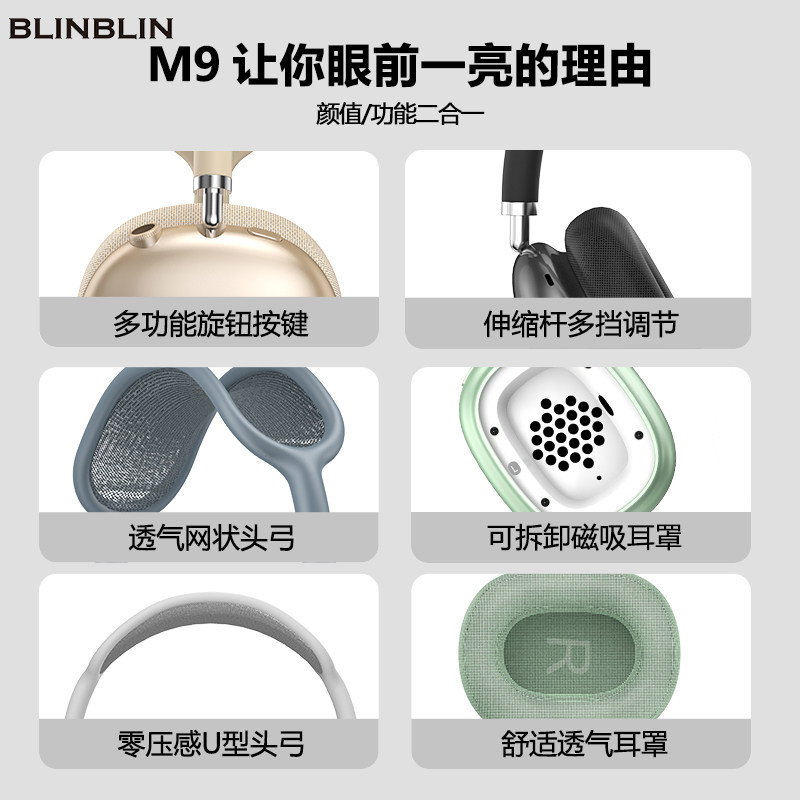 BLINBLIN头戴式蓝牙耳机M9磁吸无线耳机高清音质佩戴舒适三频均衡 - 老黄牛数码专营店