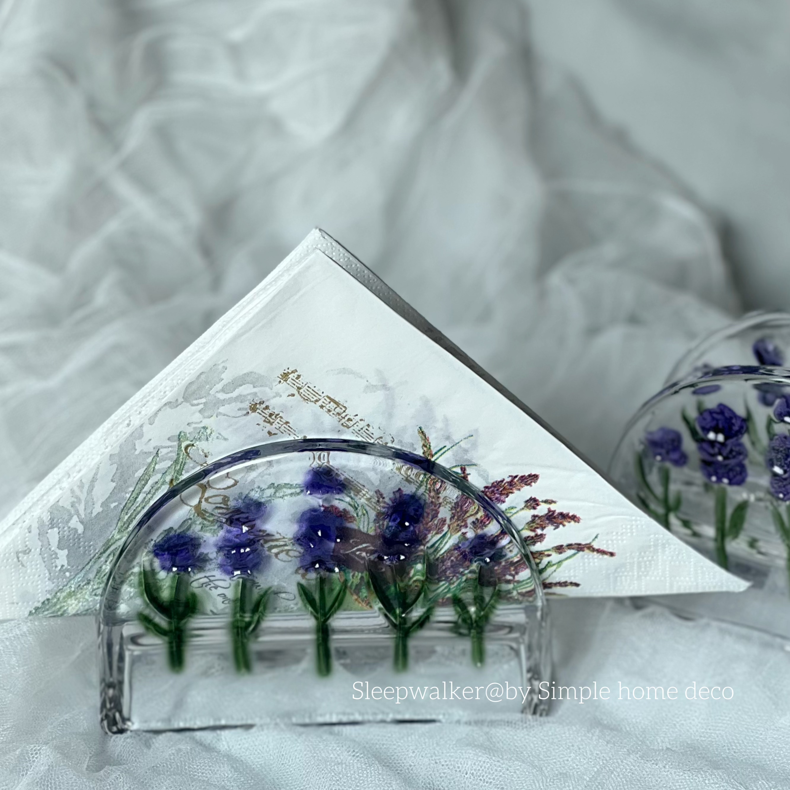 紫绘纸巾架|纯手绘艺术玻璃纸巾架餐厅民宿轻奢治愈系装饰摆件 - Sleepwalker by Simple Home Deco