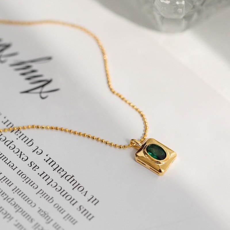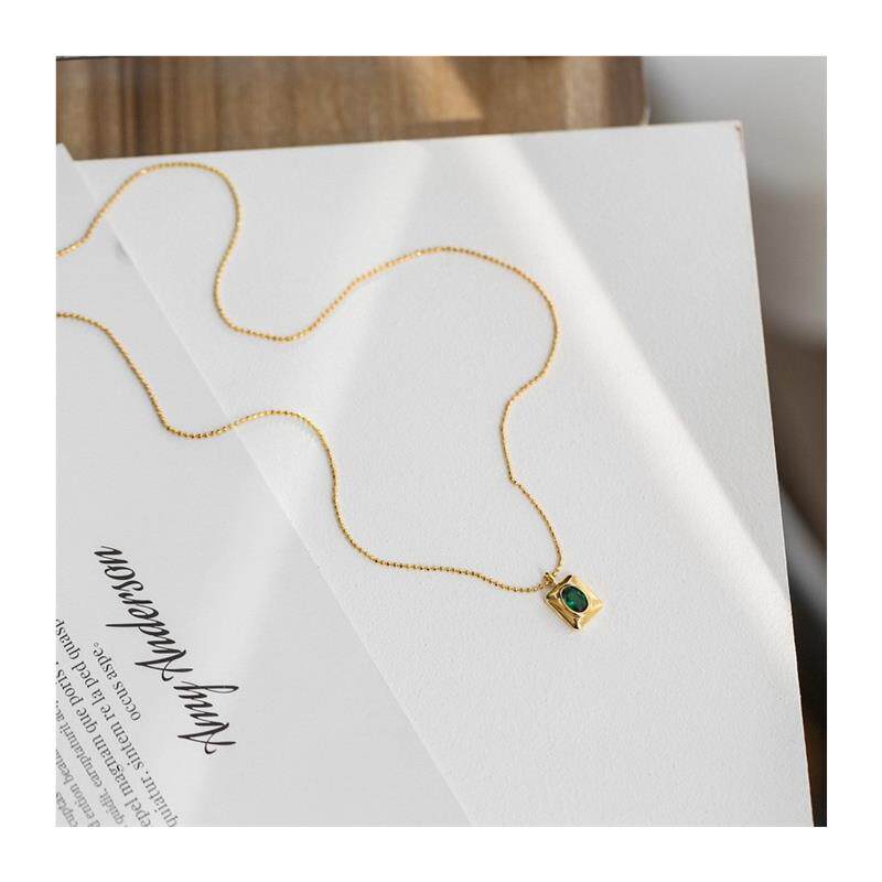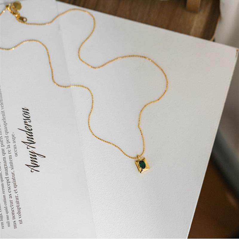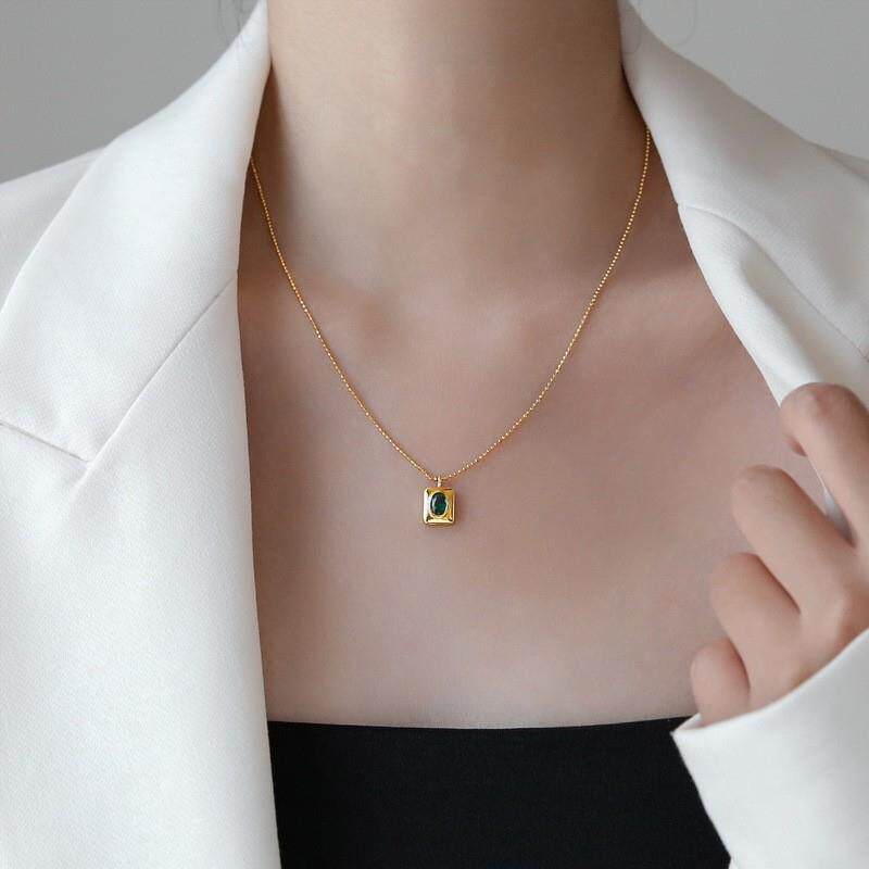 小众轻奢方牌绿水晶项链女夏锁骨链颈链装饰吊坠百搭高级设计感 - 碧海蓝天店铺