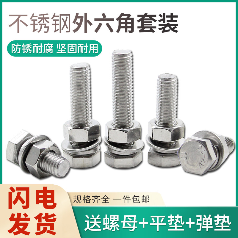 M4M5M6M8M10M12M14M16-M24/304不锈钢外六角螺丝螺栓螺丝螺母套装 - 楚佑五金
