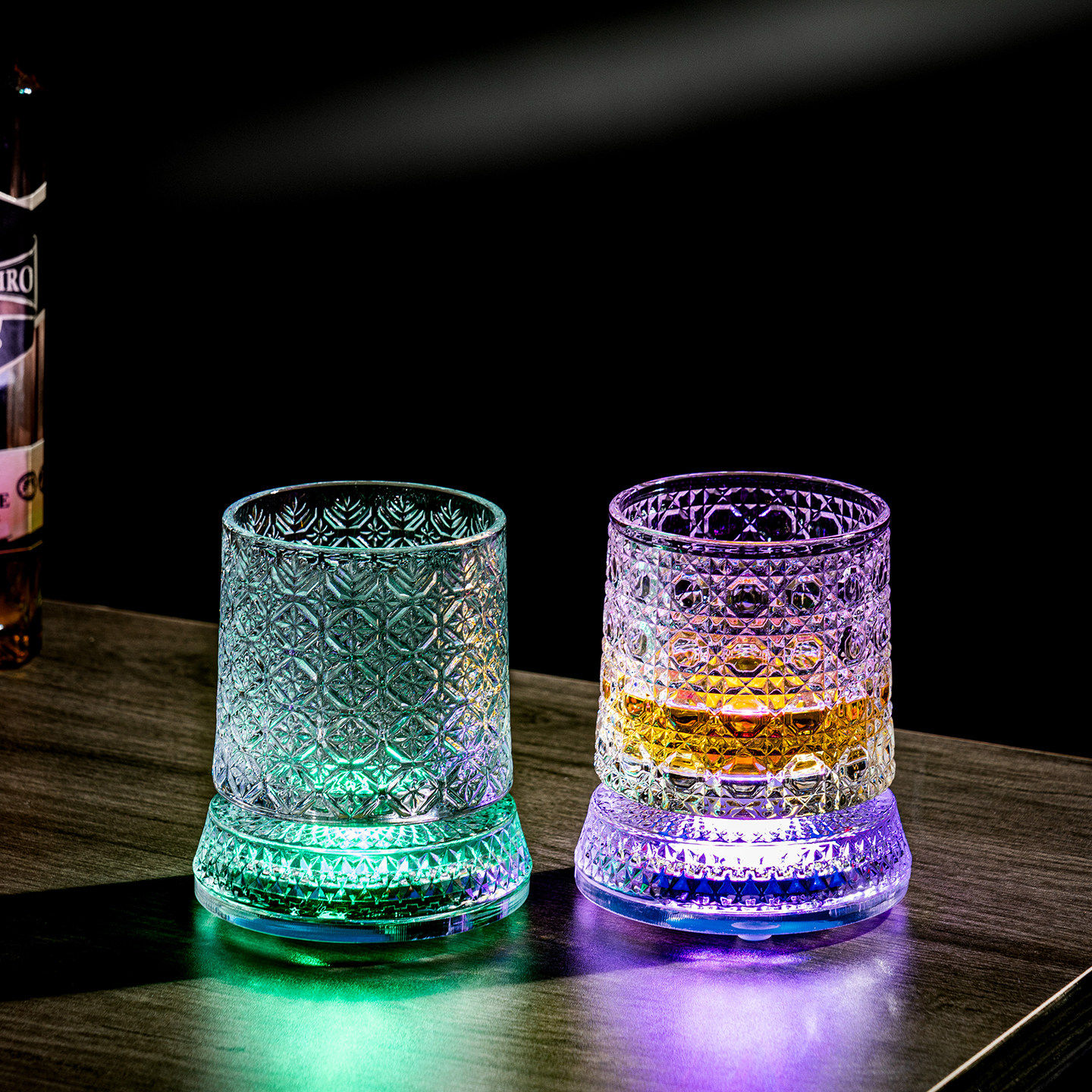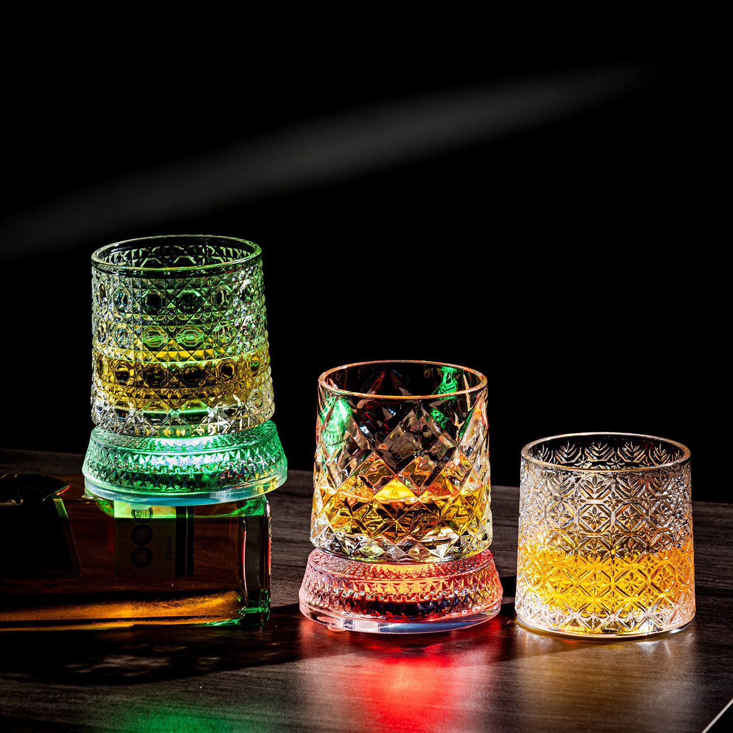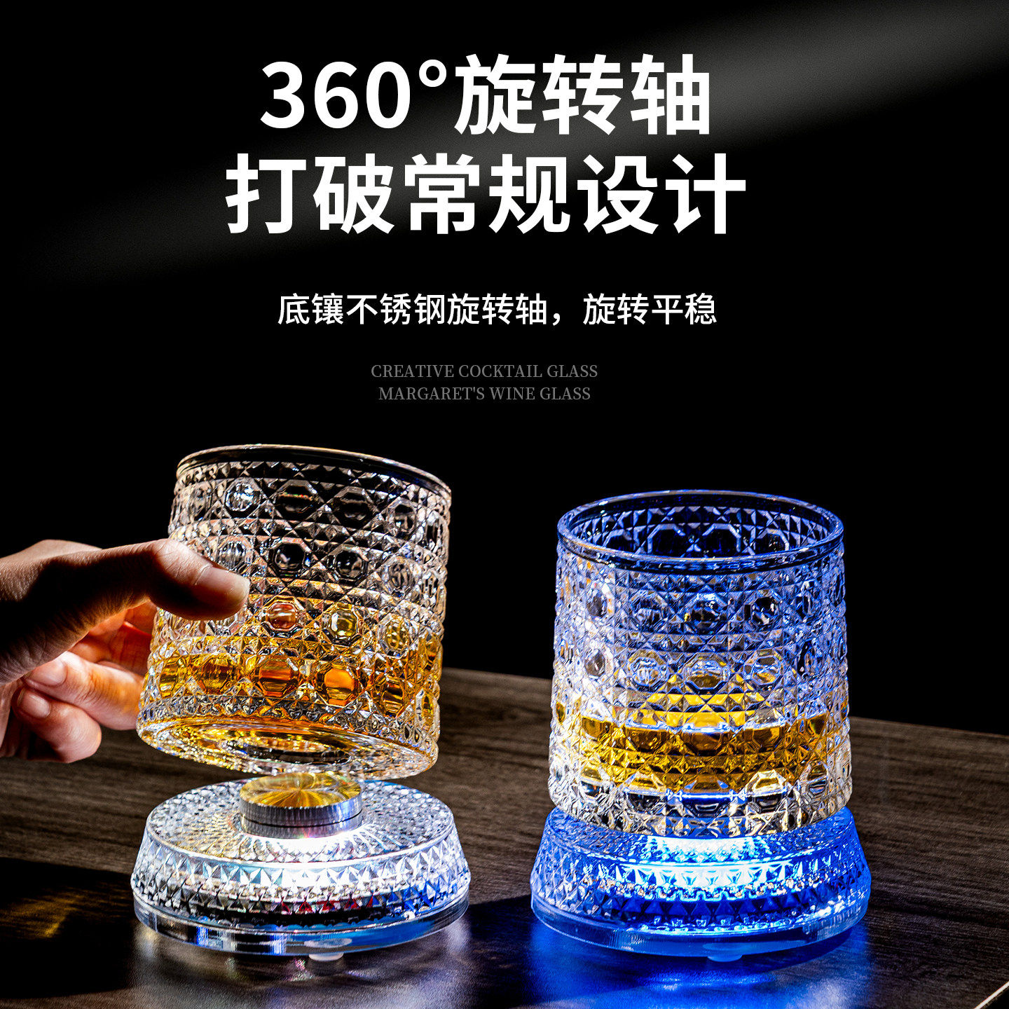七彩发光威士忌杯LED遥控调光玻璃酒杯炫彩灯光杯旋转可充电解压 - 屿风精选