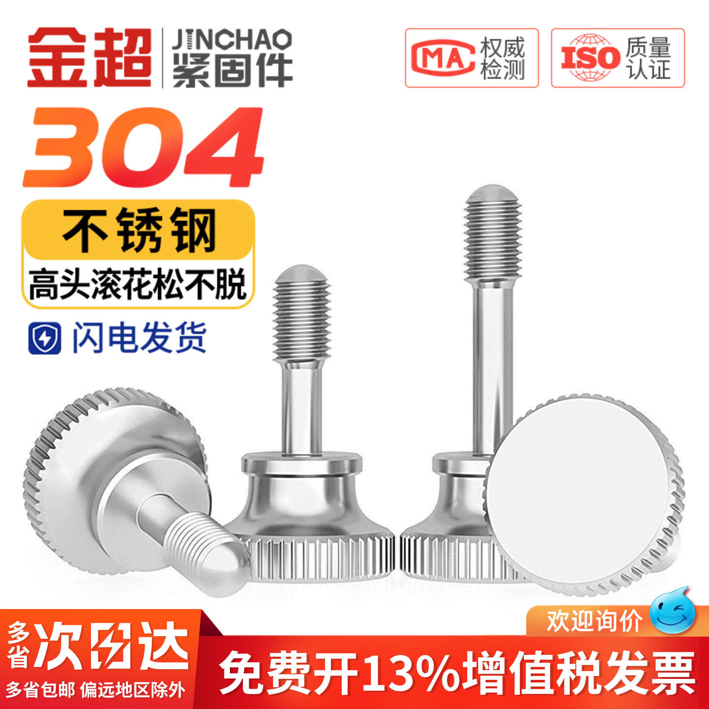 304不锈钢高头松不脱螺丝钉滚花GB834手拧不脱出螺栓M3M4M5M6M8mm - 金超官方旗舰店