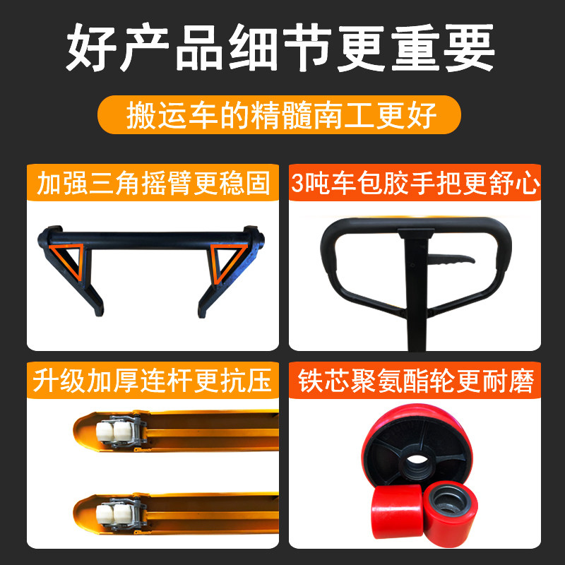 南工2吨3吨手动液压搬运车 叉车 地牛托盘油压手推拖车升高装卸车 - 南工叉车佰达直销店