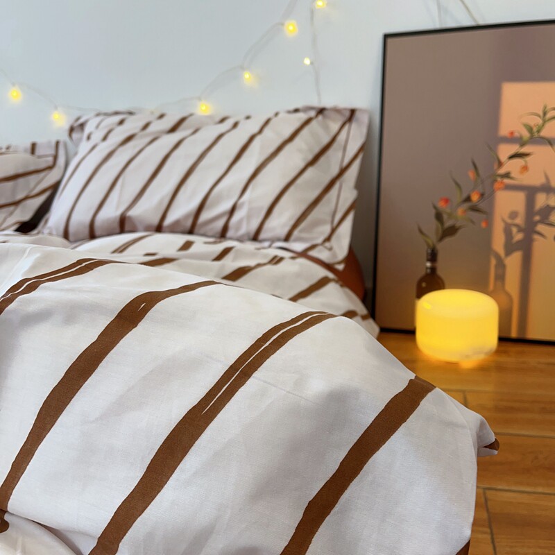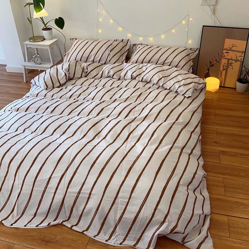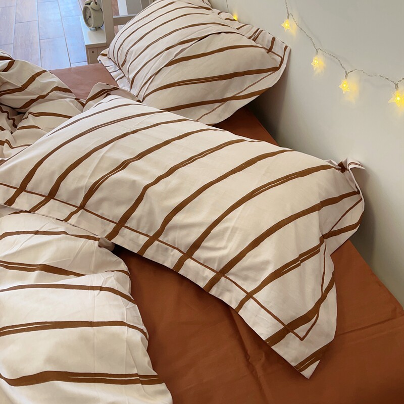 简约生活 SIMPLIFY 棕咖色条纹纯棉四件套中性风双人被套1.8m春夏 - 浅米家居 生活工作室