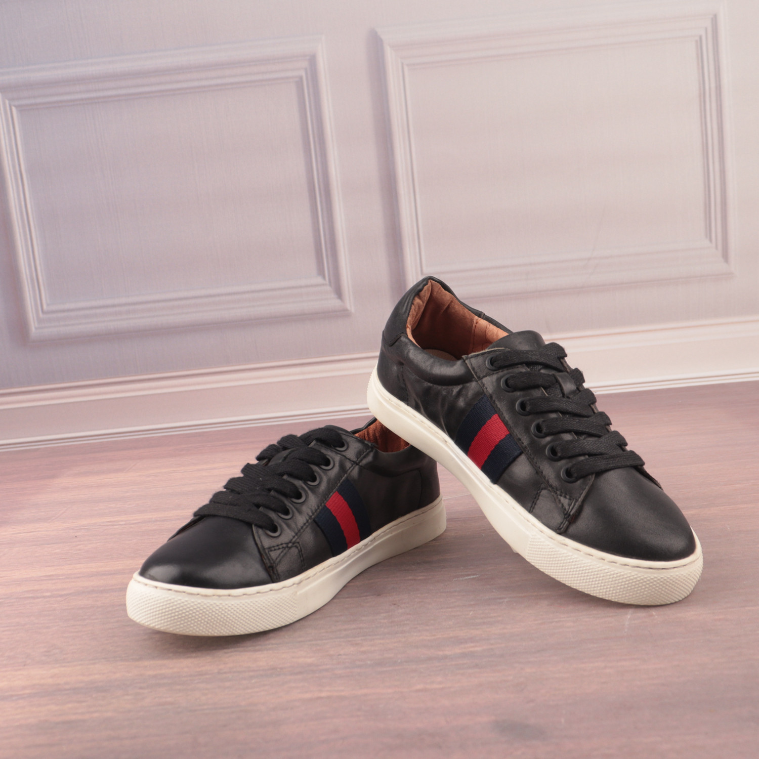 您的位置:安康生态农业开发平台  >   >  35码黑色牛皮革真皮圆头平底拼色女鞋子轻便时尚休闲板鞋X96-2