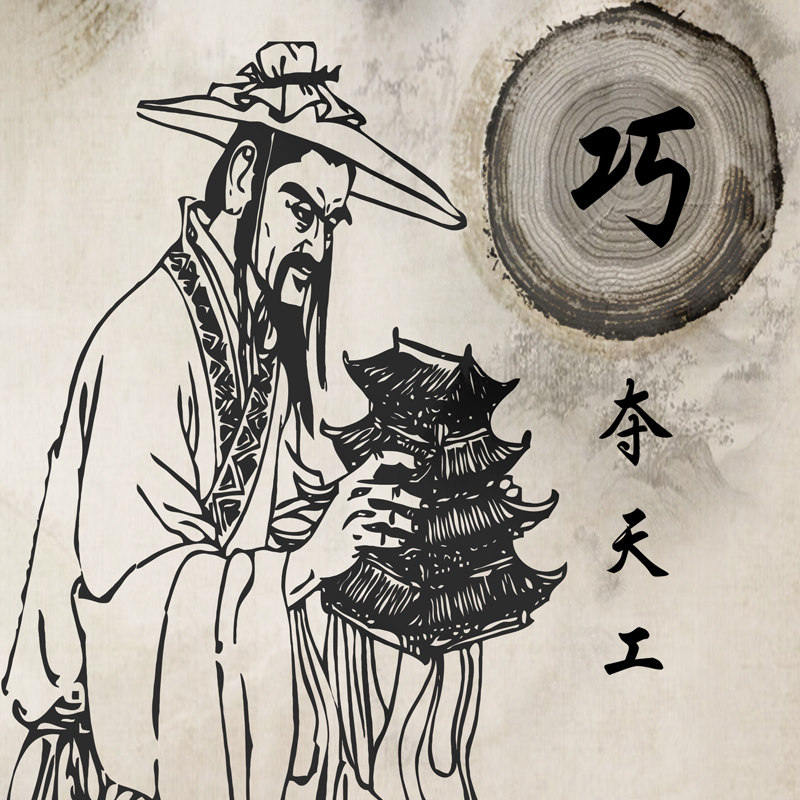 鲁班祖师爷画像丝绸画木匠木工土木建筑业房地产挂画办公室卷轴画 - 大海盐味铺