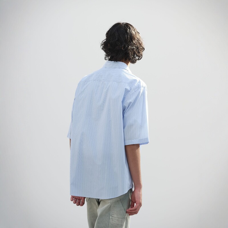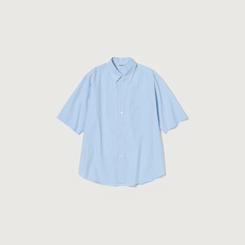 AURALEE SUVIN HIGH STRIPE SHIRT 25SS 极细羊毛竖条纹短袖衬衫 - 東京杠杠 良久株式会社