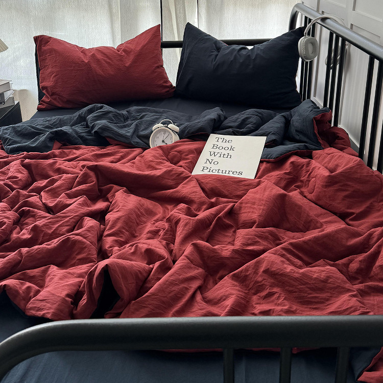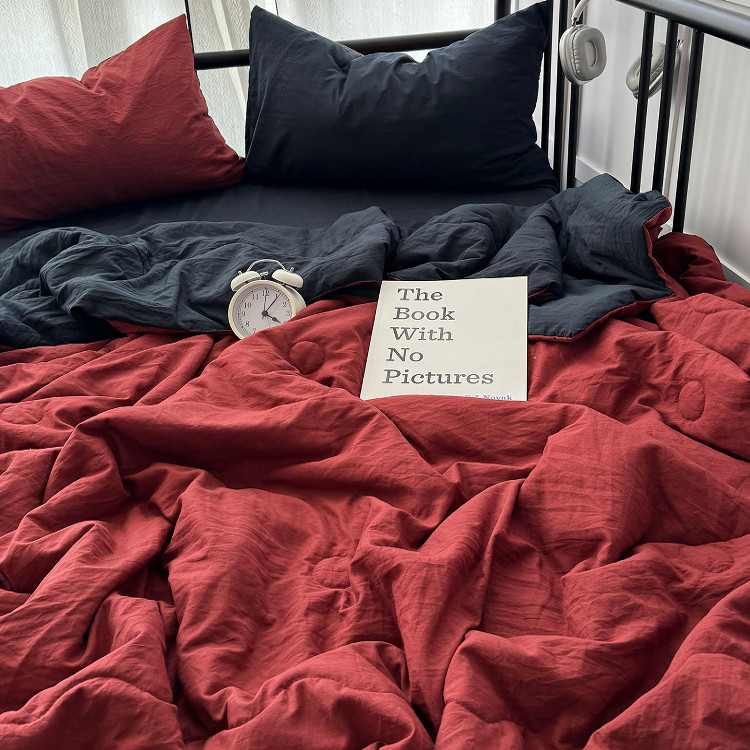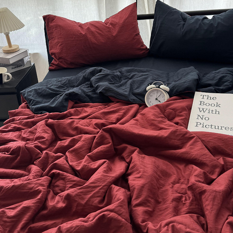 ins博主风安可拉红水洗棉夏凉被四件套夏季纯色宿舍空调被三件套 - 时光锦家居纺