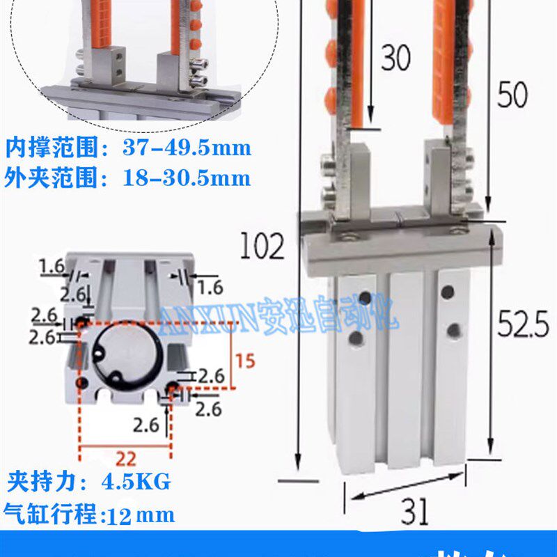 机械手治具配件16DL/20D手指气缸加长夹头平行支架带硅胶抱夹外撑 - 望海苑商城的小店52