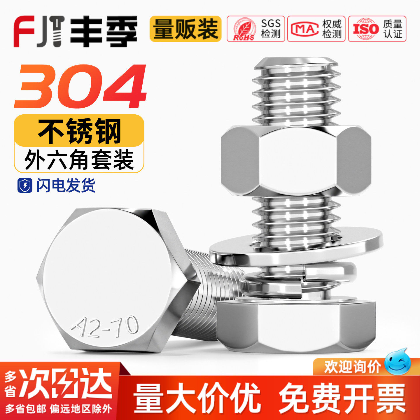 304不锈钢外六角螺丝螺母套装大全螺栓加长螺杆M3M4M5M6M8M10-M20 - 丰季旗舰店