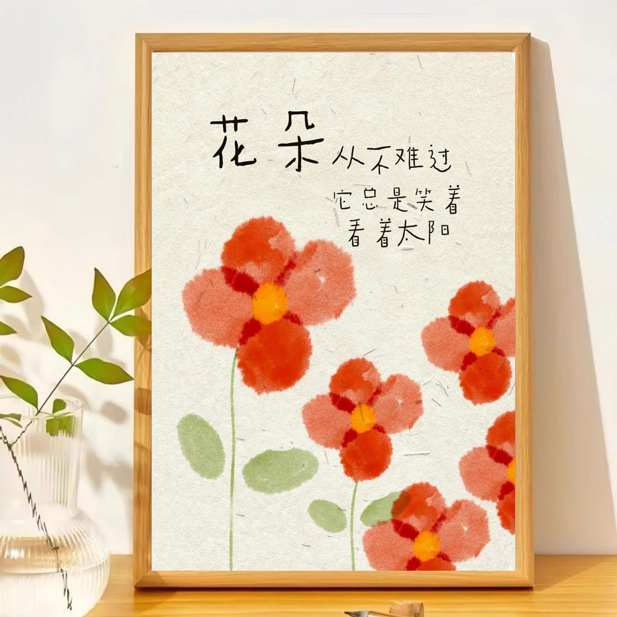 花朵从不难过治愈励志文字相框摆台客厅卧室桌面摆件送朋友礼物 - 贝甄质优品牌店