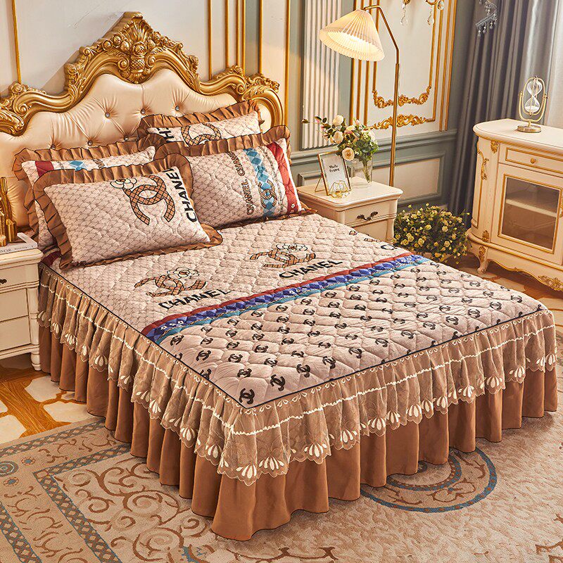 秋冬加厚保暖水晶绒夹棉床裙单件床群加棉床罩三件套卡通防滑床套 - 寒枫踏雪商城的小店46