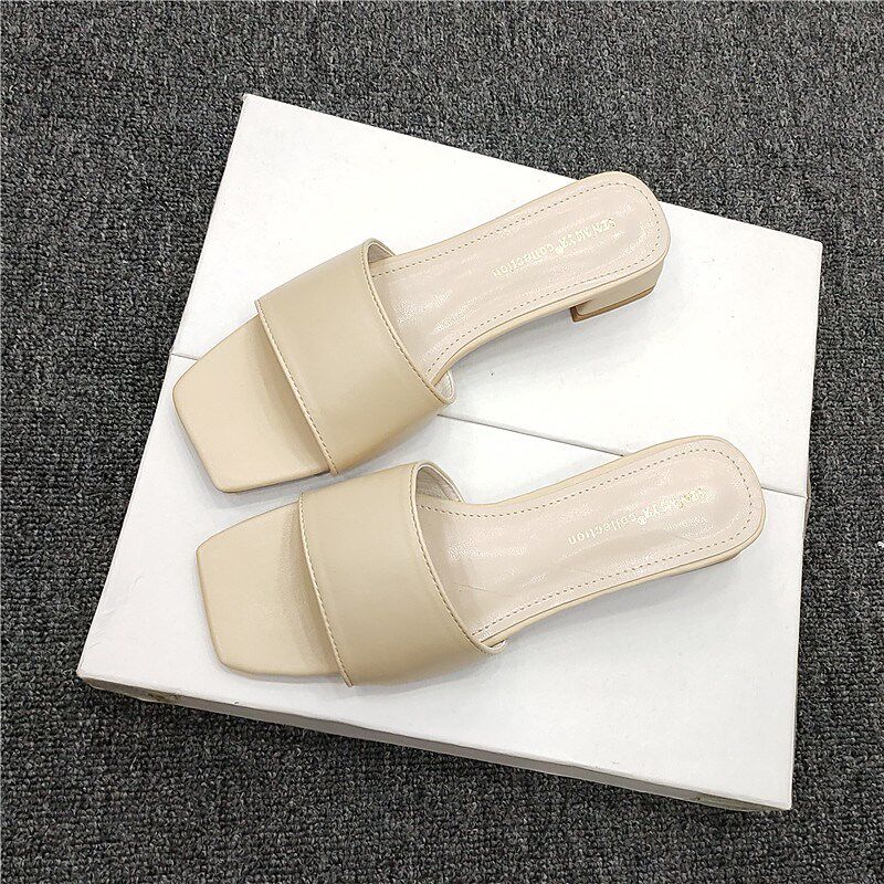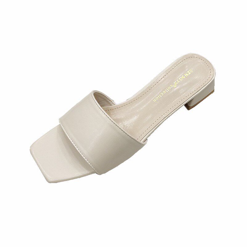 2024年夏季新款粗跟外穿v拖鞋女百搭简约中跟低跟露趾外出一字拖 - 礼桂轩商城的小店24