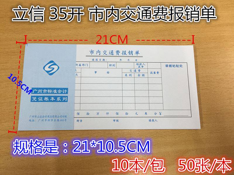 。立信35市 内交通费报销单 广州市标准会计用品 35开凭证系列10 - 逛商家工厂店