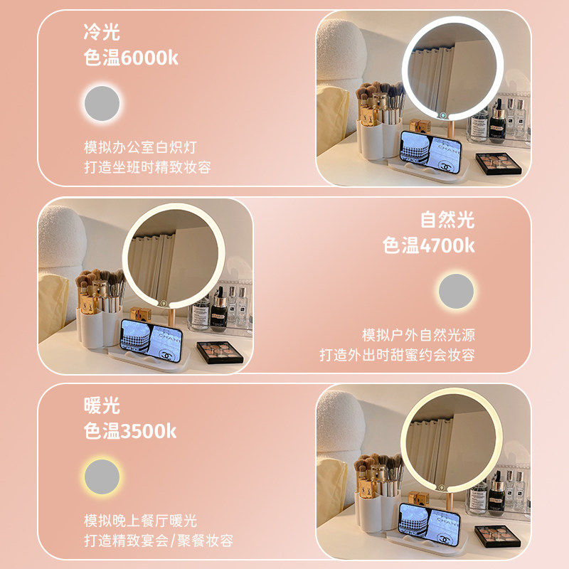 led化妆镜带灯学生宿舍台式桌面卧室梳妆台高级感补光梳妆镜子 - 优致集