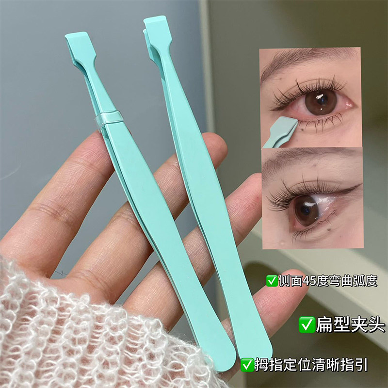 一秒贴好下睫毛顺手镊子下睫毛专用倒睫嫁接高精密度平口扁头夹子 - 集优美美妆工具