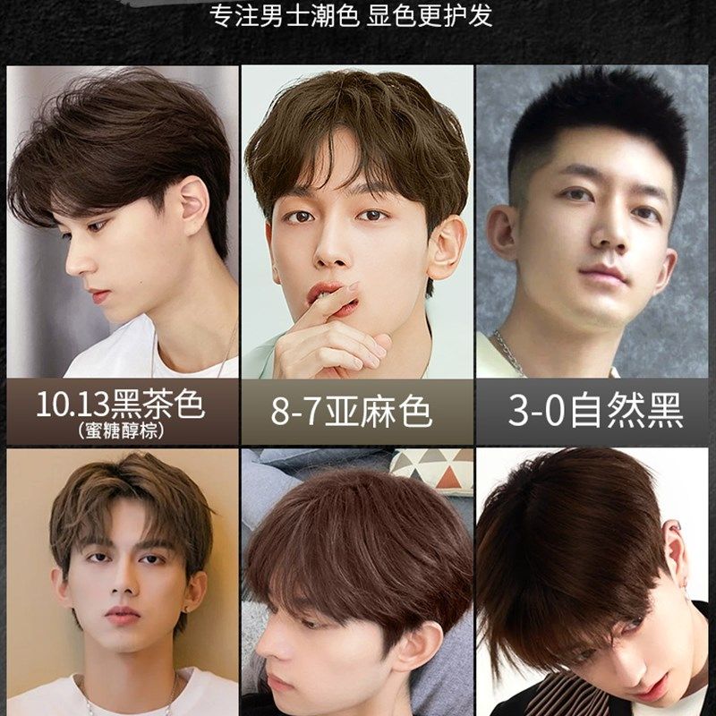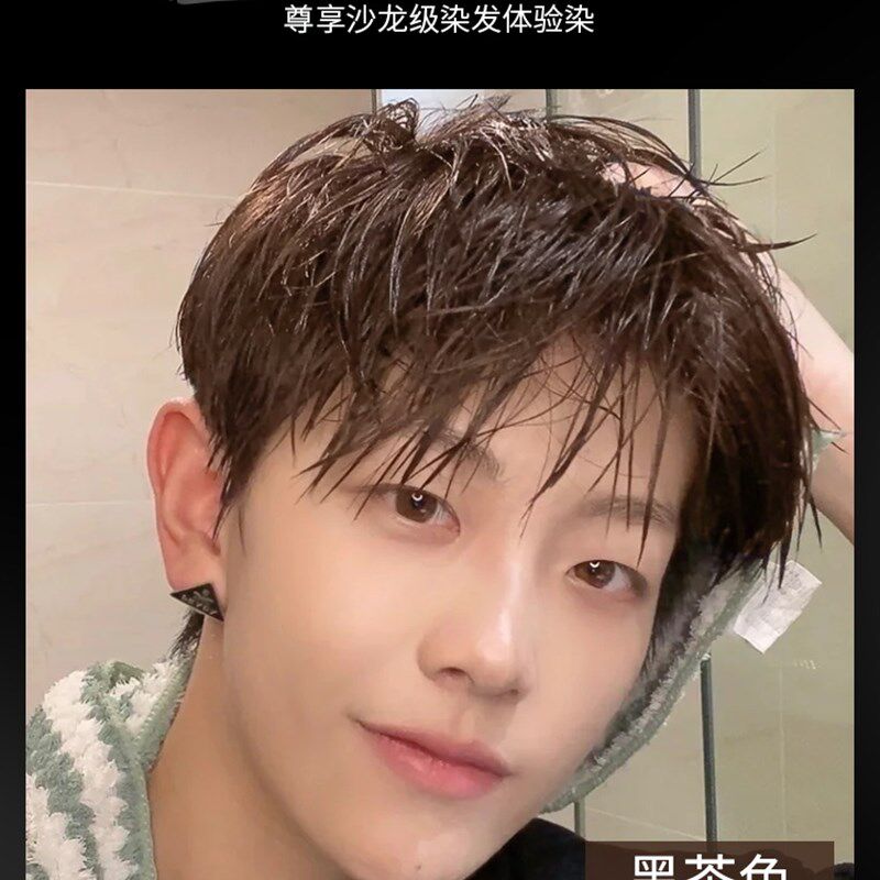 速发染发男男生专用在物纯黑色黑茶色流行免漂自己植家染发剂膏士 - 弦特优选
