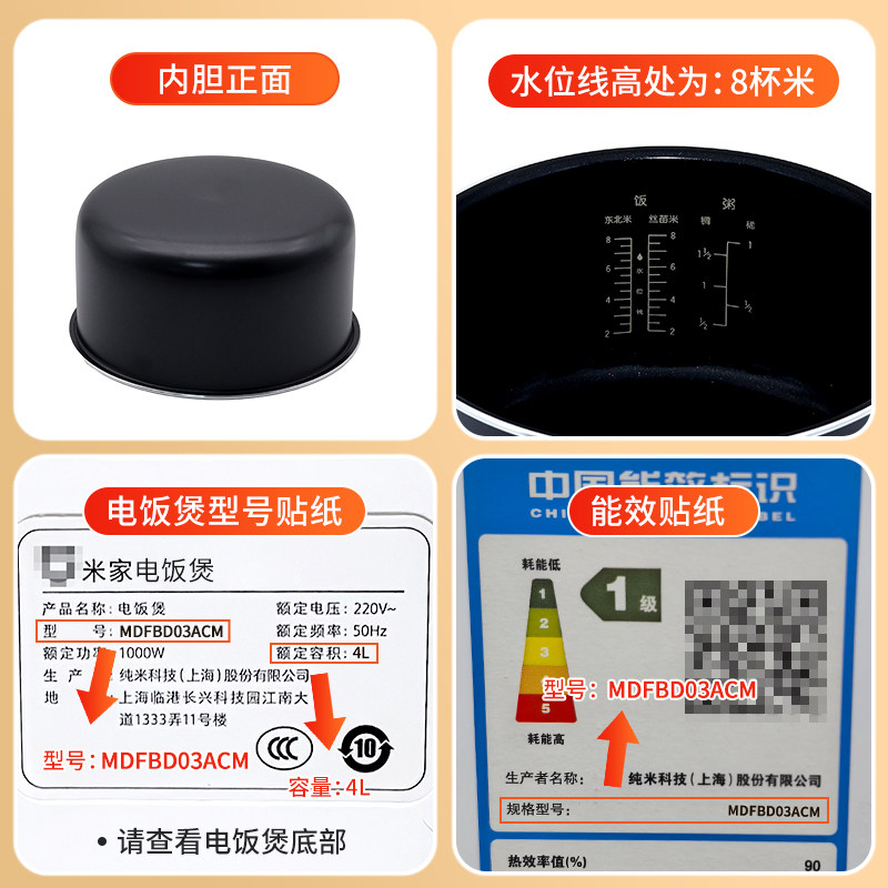 适用于小米家电饭煲C1 4L升MDFBD03ACM内胆内锅胆全新原装配件 - 内胆内胆蒸笼蒸笼配件店