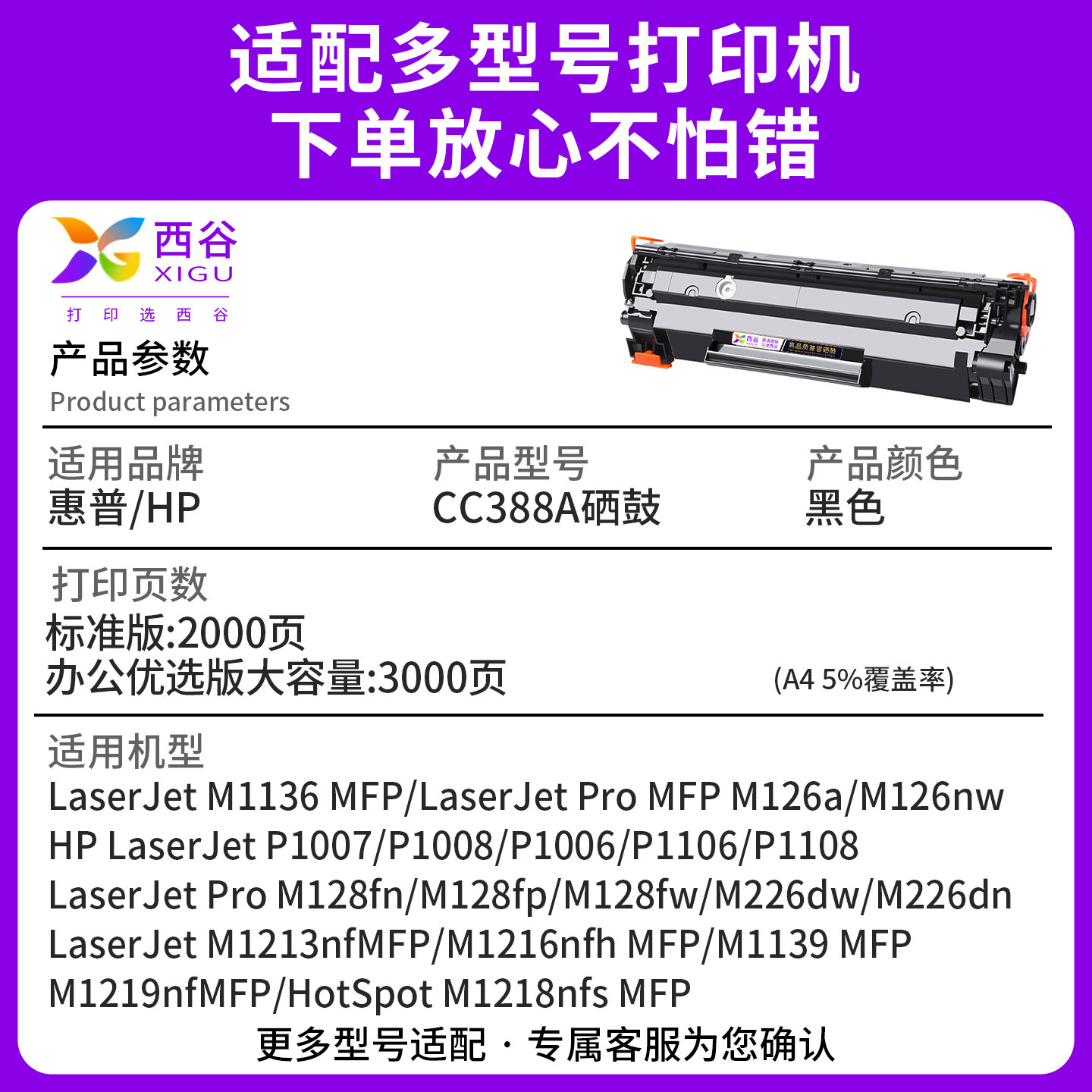 适用惠普m126a硒鼓m1136 HP1108 m126a p1106打印机p1007 p1008 388a m128fn m1213nf M174nw 1219 M1218 - 西谷办公旗舰店