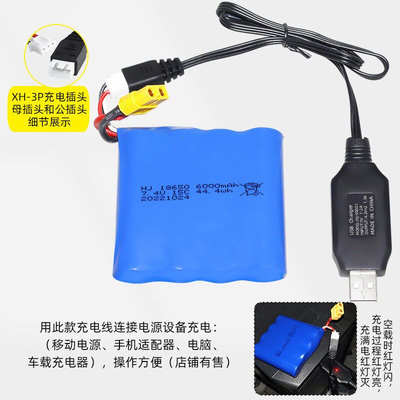 18650锂电池组7.4V 6000mAh大容量15C倍率高速快艇配件遥控船电池 - 森馨兰旗舢店企业店