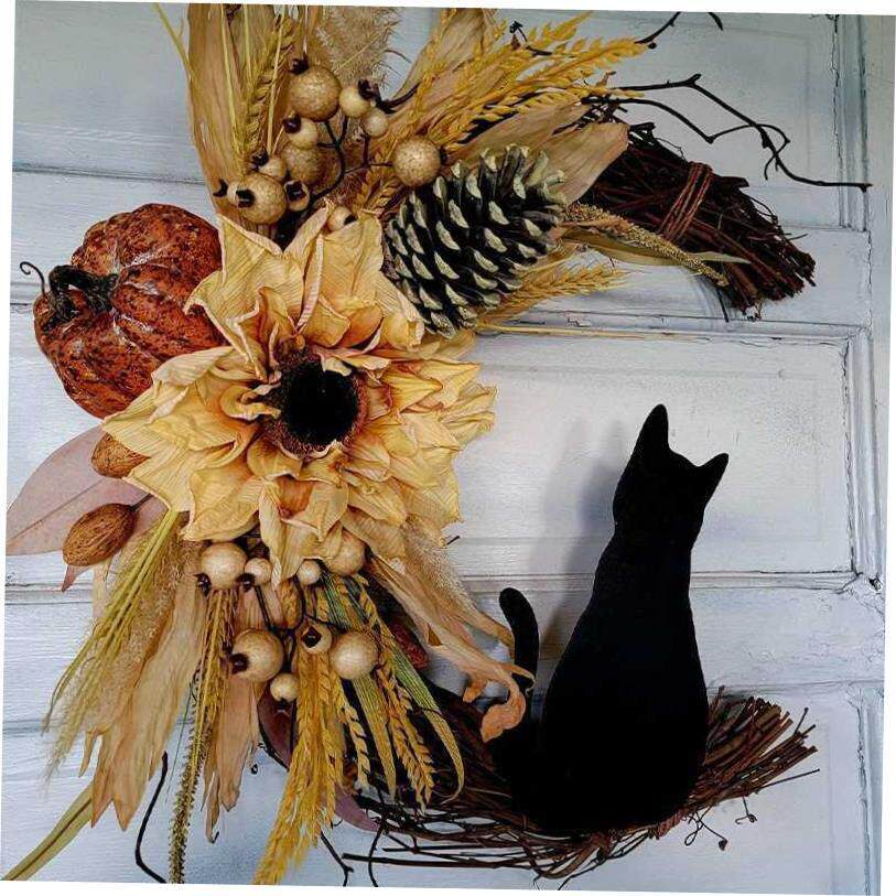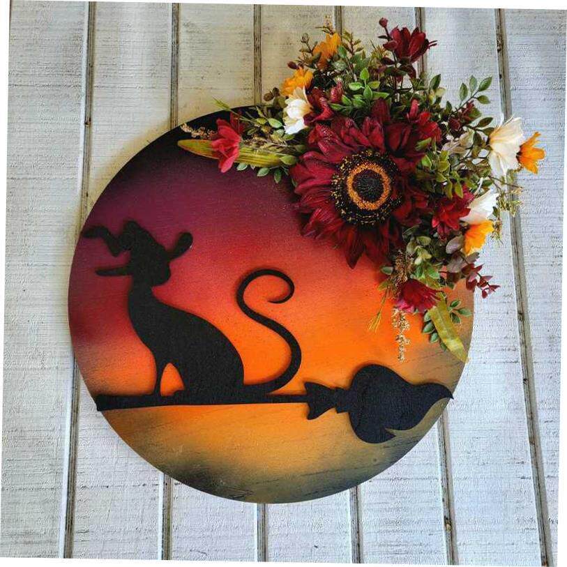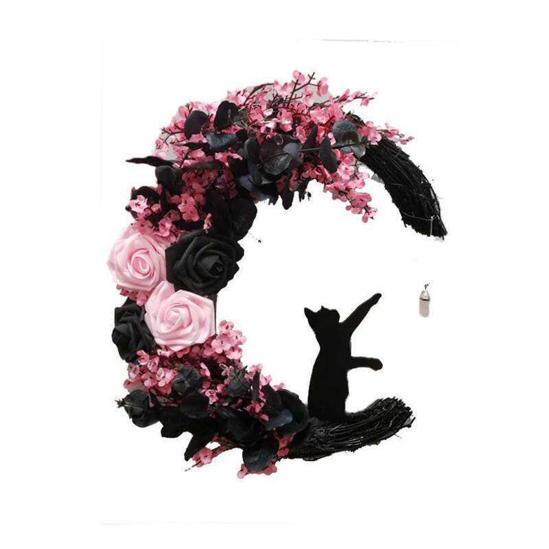 Halloween Moon Cat wreath door hanging decorations花环门挂饰 - uwfekgxgwv的小店