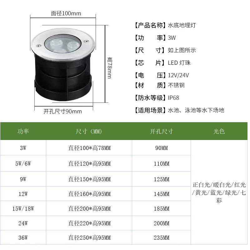 水底地埋灯led水下防水水池嵌入式不锈钢12V24v景观鱼池灯泳池灯 - 雪染红枫商城的小店8