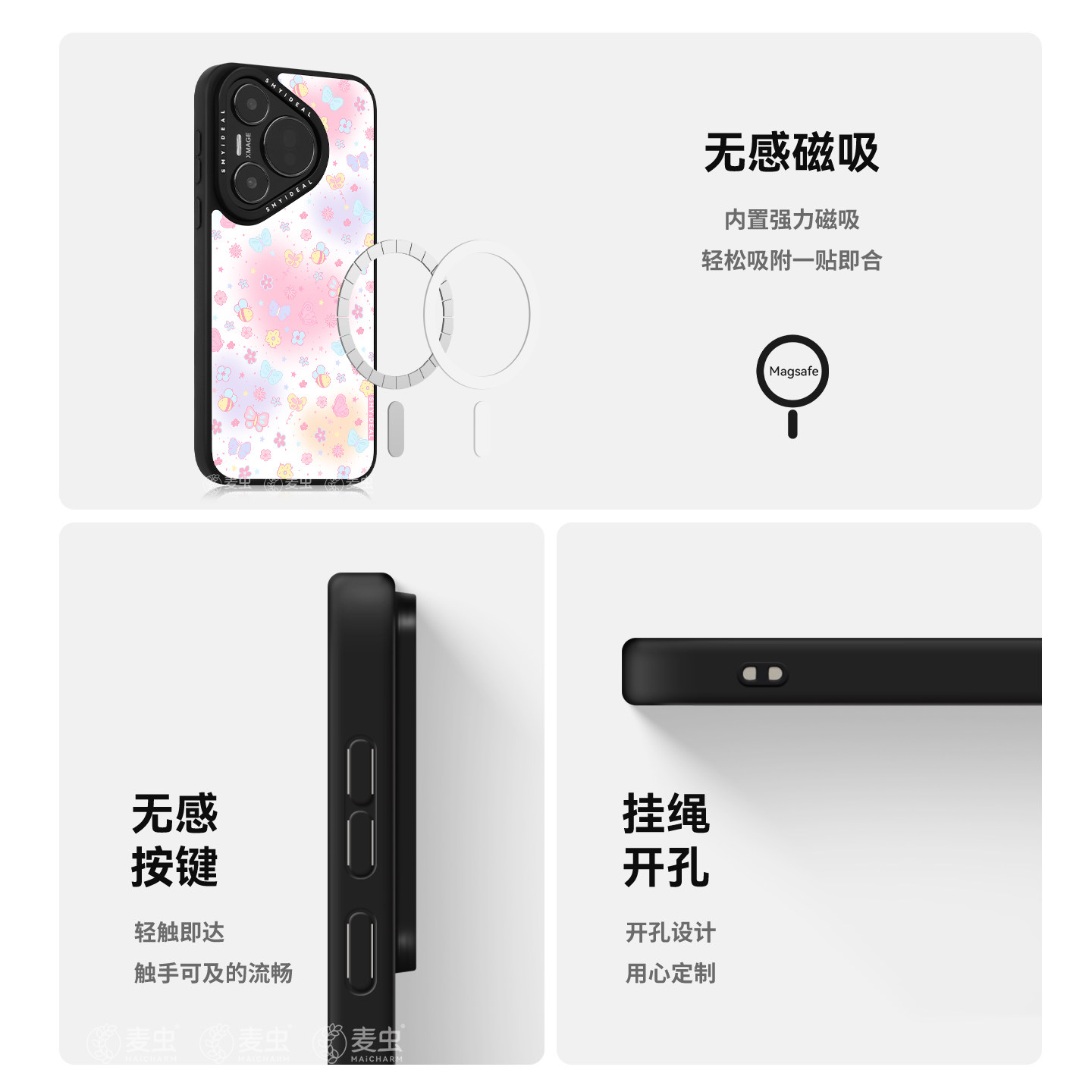 适用华为pura90Promax/荣耀300手机壳magic8/80磁吸保护套Pura70Pro+新款清新春天防摔蝴蝶碎花好看高级感外 - 麦虫旗舰店