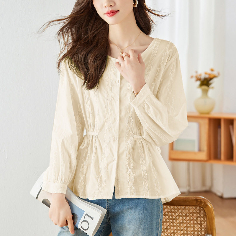 您的位置:安康生态农业开发平台  >   >  圆领绣花白衬衫女士长袖2026新款春季小个子收腰显瘦衬衣纯棉上衣