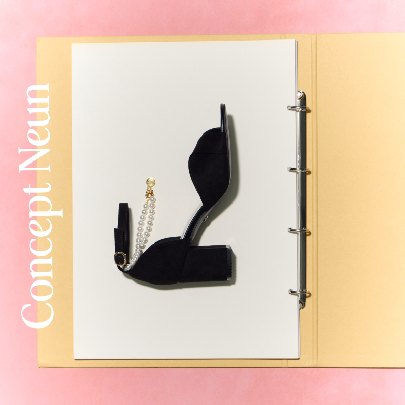 Concept Neun法式浪漫交叉带珍珠粗跟高跟圆头凉鞋女 - Concept Neun