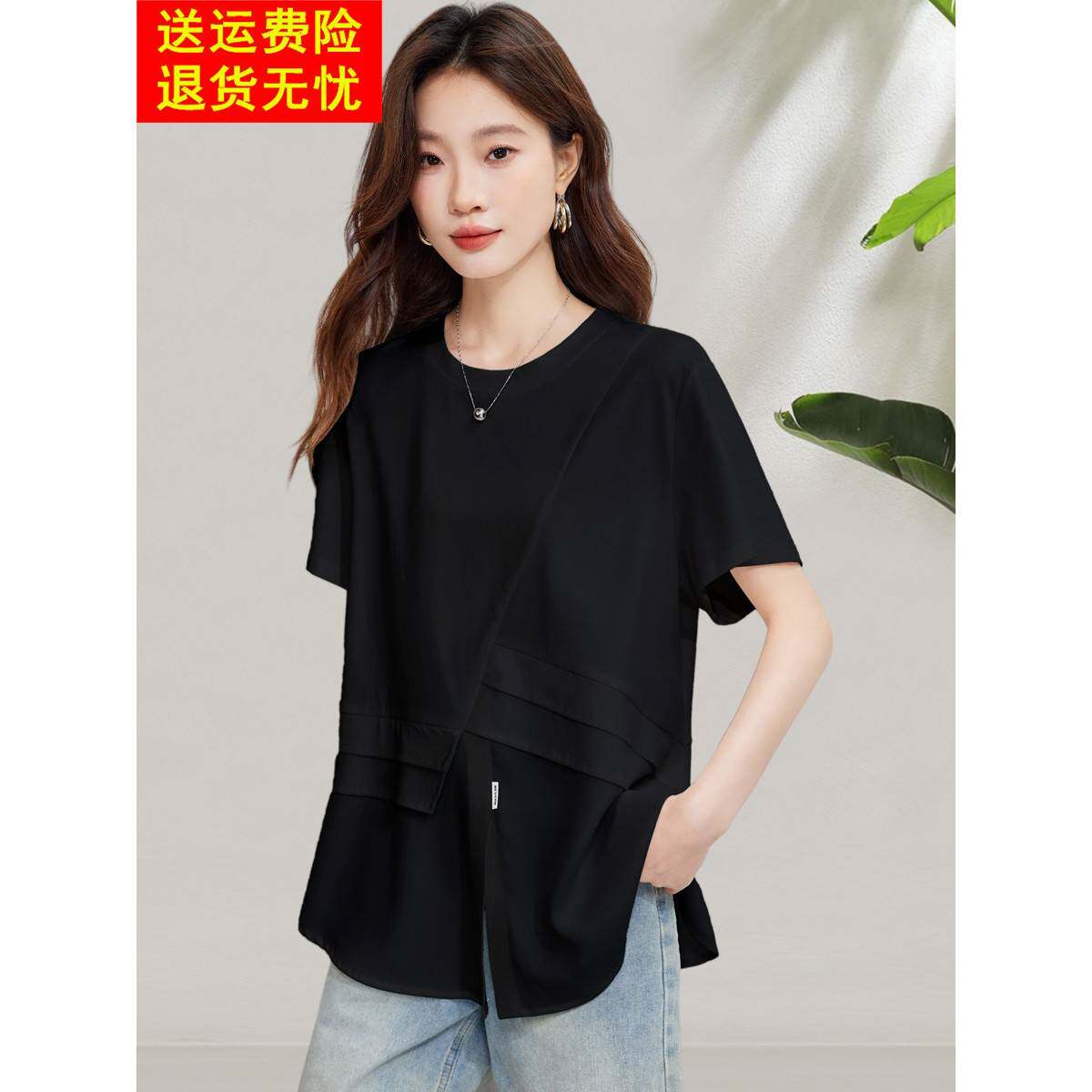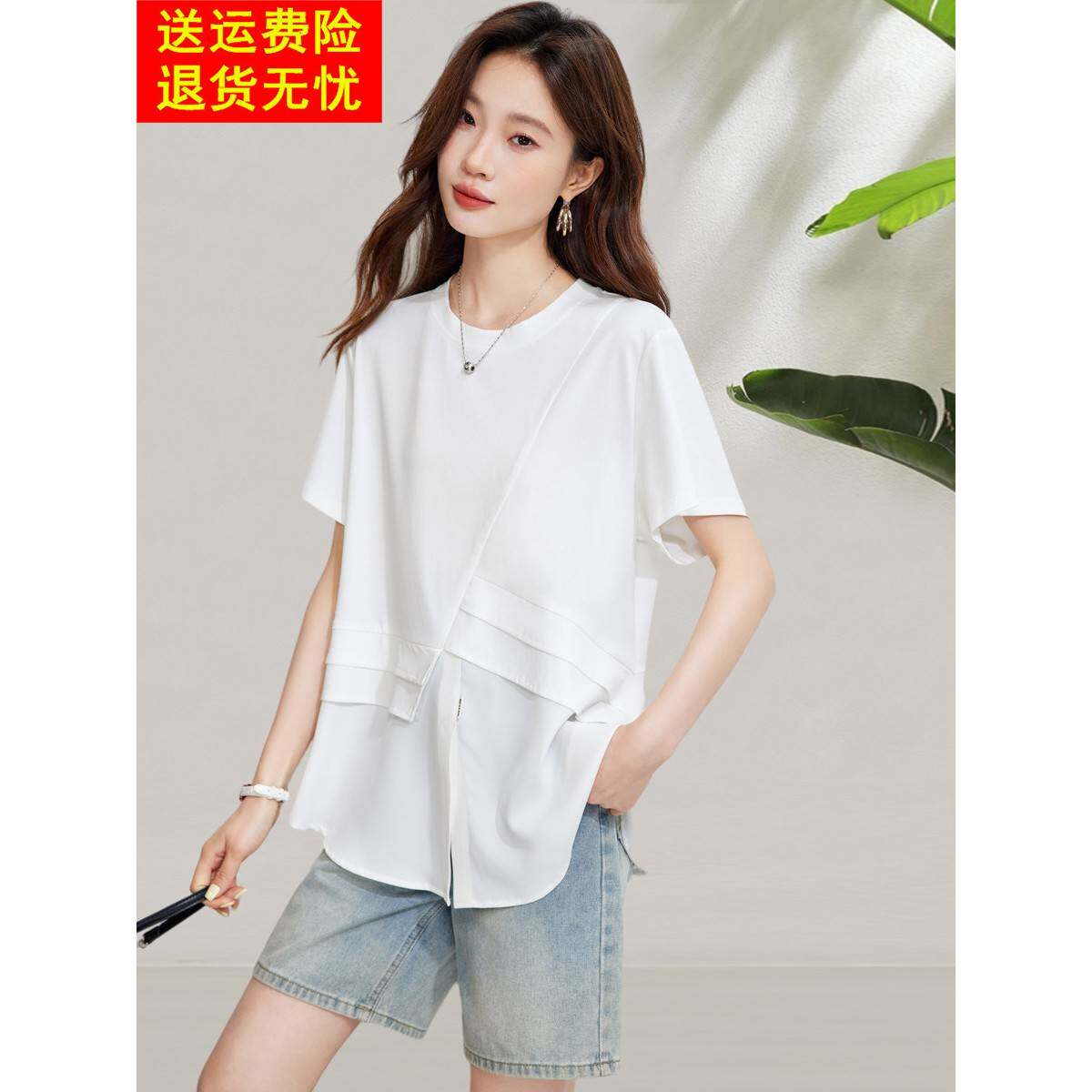 2025新夏季风格白色假休闲两件套短袖t恤,时尚的薄套头衫,宽松 - 颜域服装店