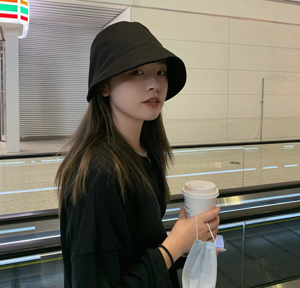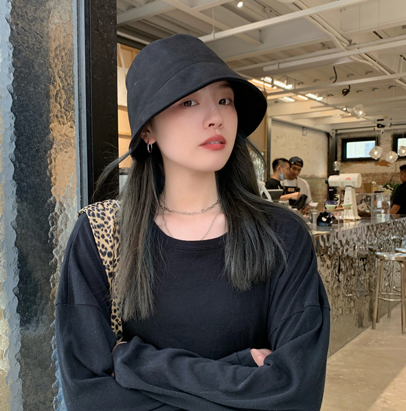 日本RX麂皮绒渔夫帽纯色日系显脸小百搭休闲遮脸水桶帽子女盆帽潮 - Time Sky