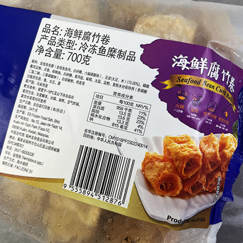 EB海鲜腐竹卷整箱商用马来西亚鱼香腐竹麻辣烫火锅食材豆皮腐皮卷 - 和味特色美食坊