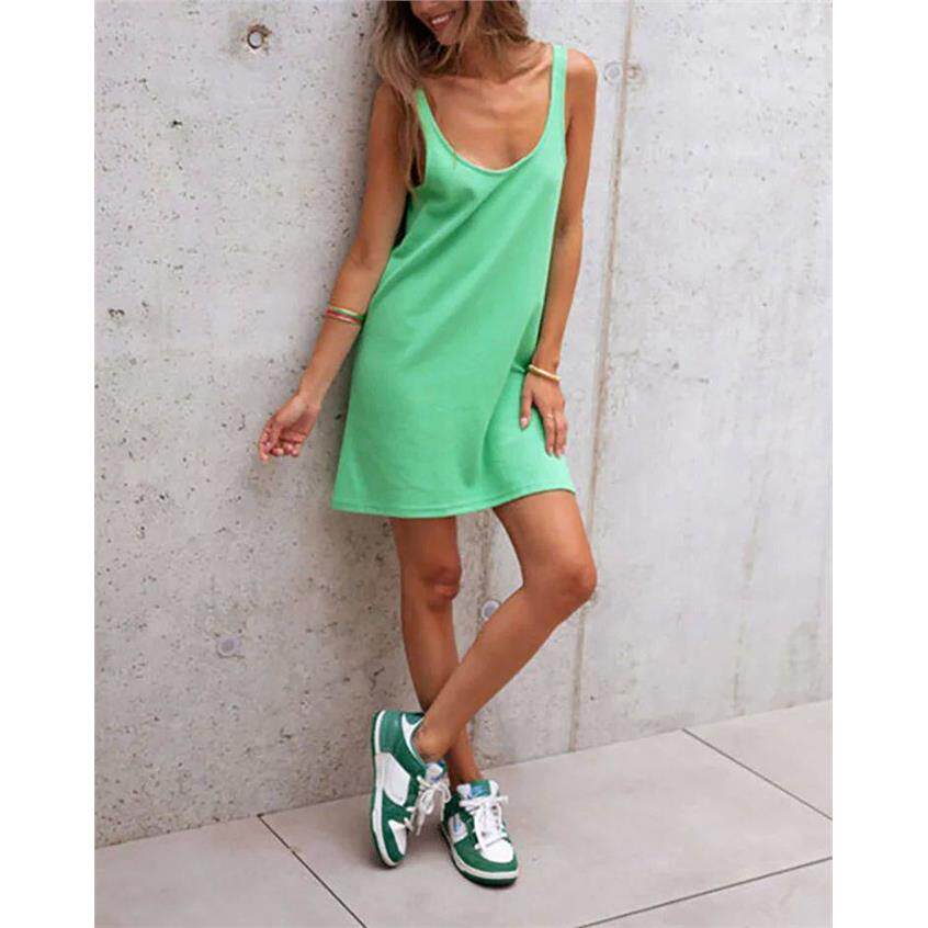 您的位置:安康生态农业开发平台  >   >  Solid color sleeveless loose camisoledress纯色无袖吊带连衣裙