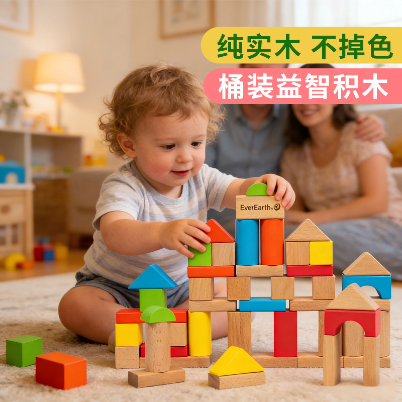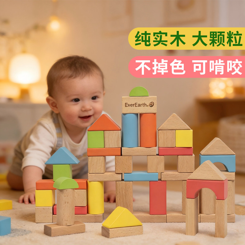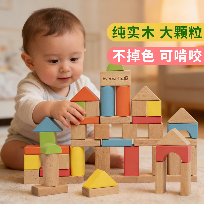EverEarth宝宝积木大颗粒婴儿拼搭实木儿童益智玩具男女孩0到3岁 - everearth旗舰店