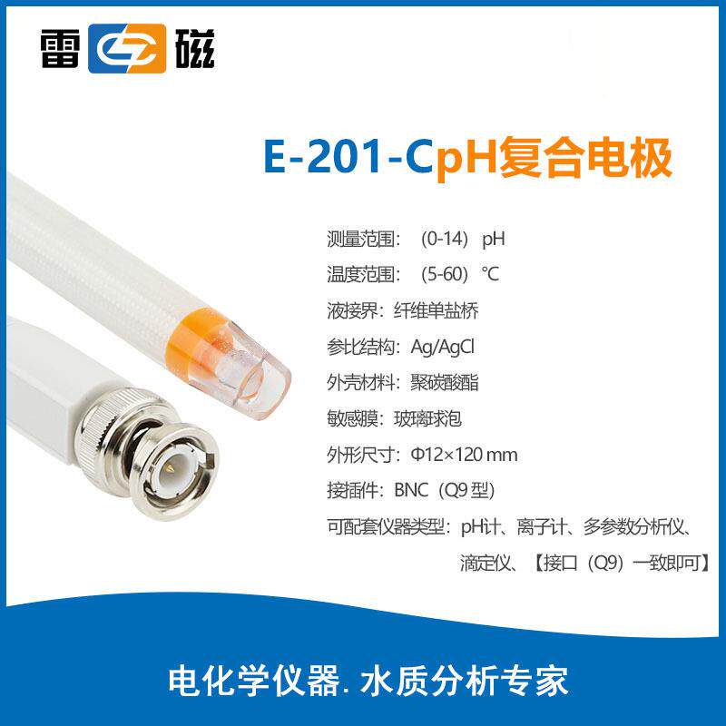 雷磁PH电极系列E-201-C/301-CF实验室便携式ph复合电极传感器探头 - 鼎兴发商贸城