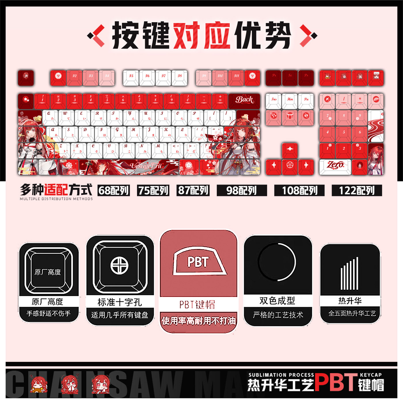 喵唔外设龙族上杉绘梨衣动漫游戏周边二次元PBT键盘正刻侧刻键帽 - 喵唔外设