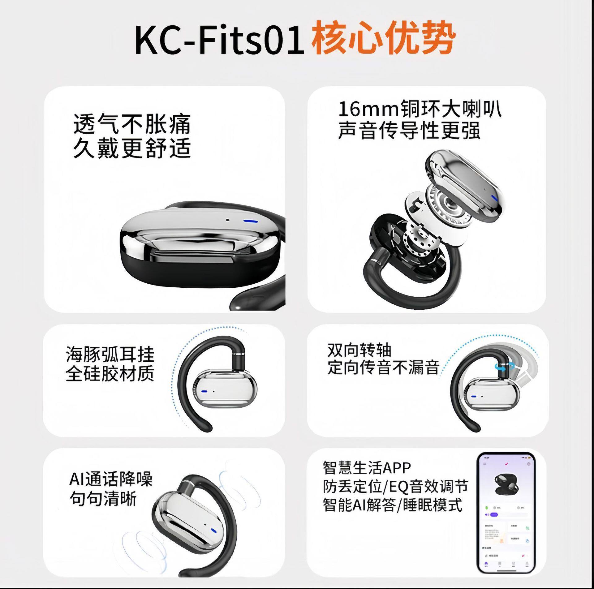 fits01蓝牙耳机挂耳式新款高音质通话降噪长续航舒适佩戴运动定位 - 有恋影音