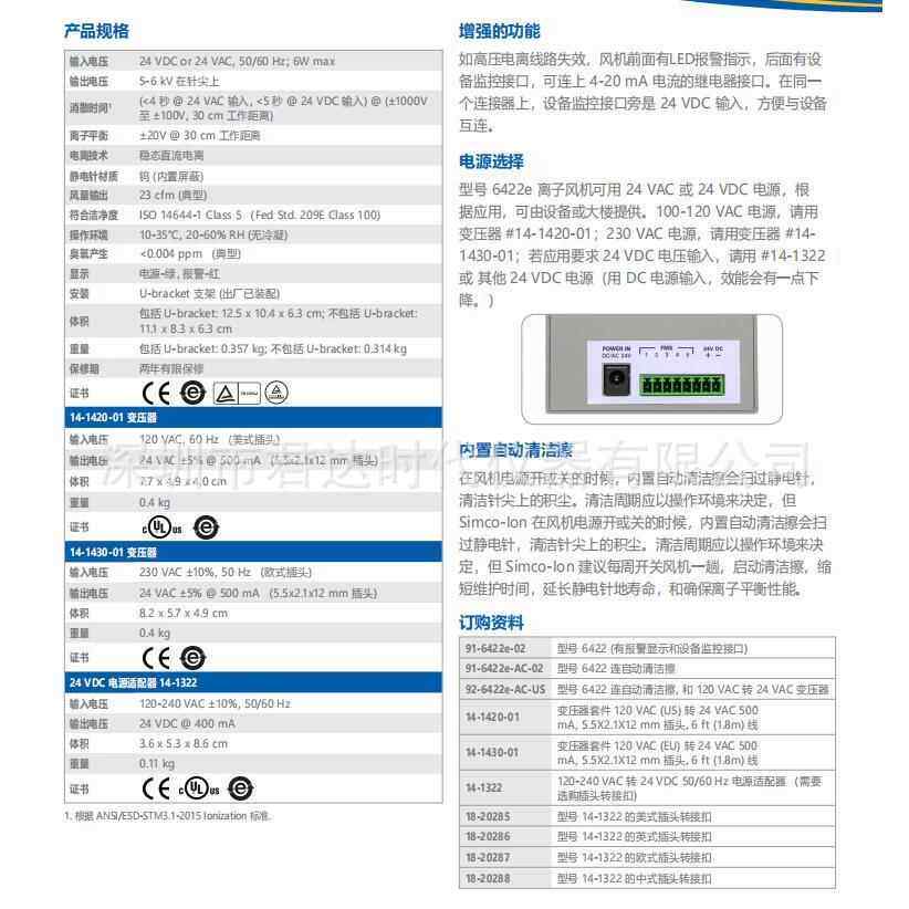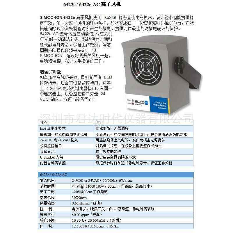 思美高SIMCO-ION 6422e离子风机 6422e-AC除静电风扇 - 永哥商贸行