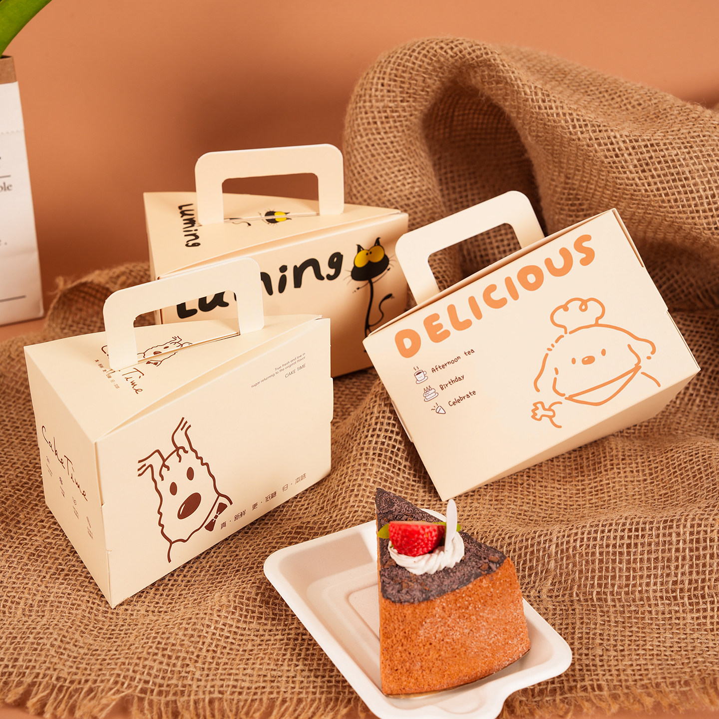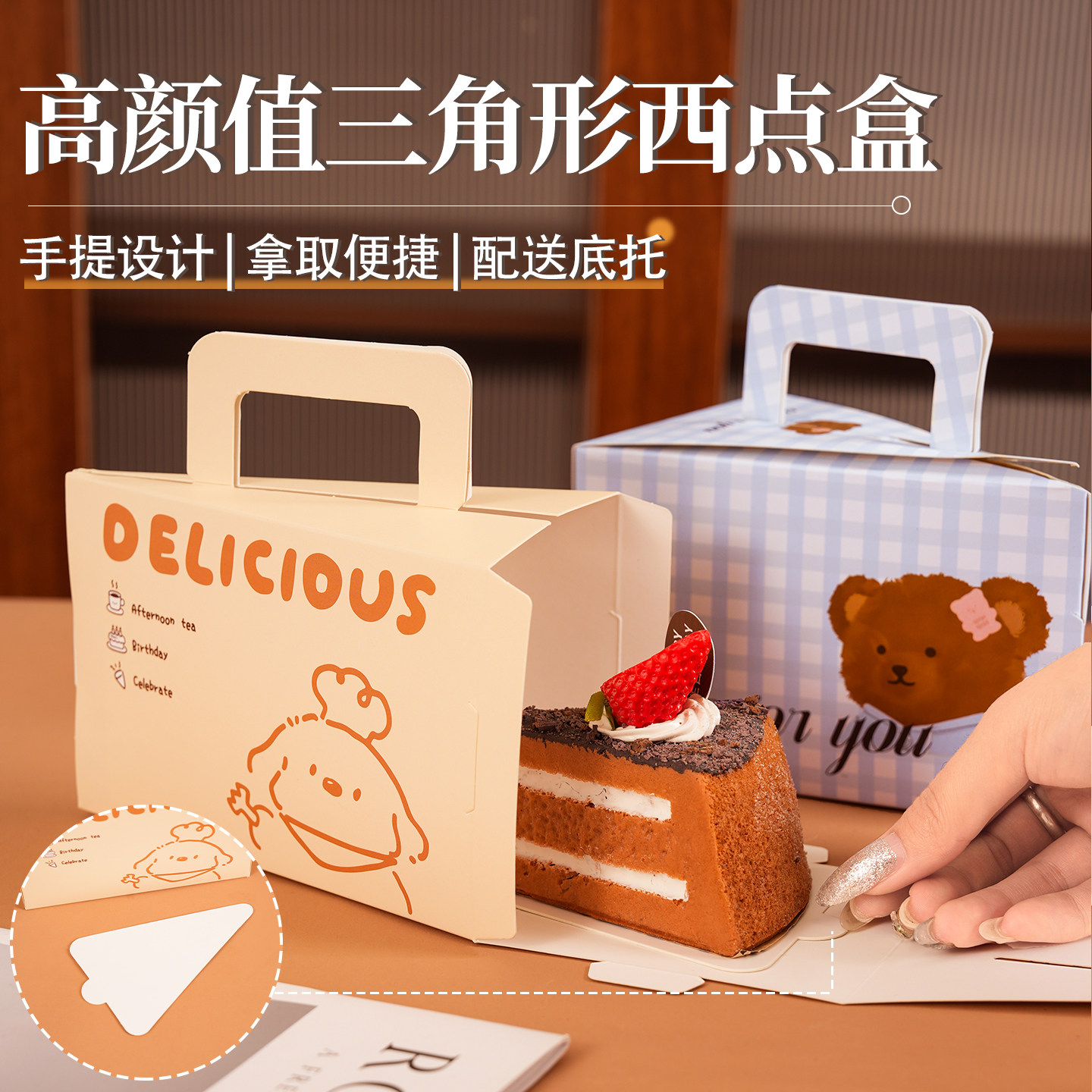 三角蛋糕盒子大开窗包装盒慕斯切块包装千层甜品切角盒手提烘焙盒 - 鹿鸣溪原创包装