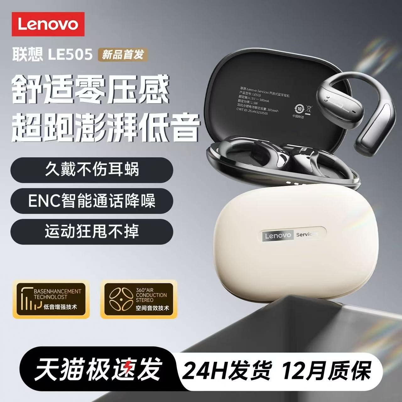 联想LE505运动挂耳式蓝牙耳机跑步无线降噪不入耳开放式2026新款 - 奢音科技