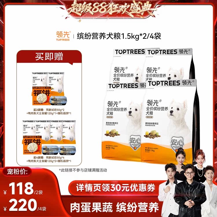 【香菇来了】领先海陆双拼猫粮鸡肉三文鱼/缤纷营养犬粮1.5kg*2袋 - toptrees宠物食品旗舰店