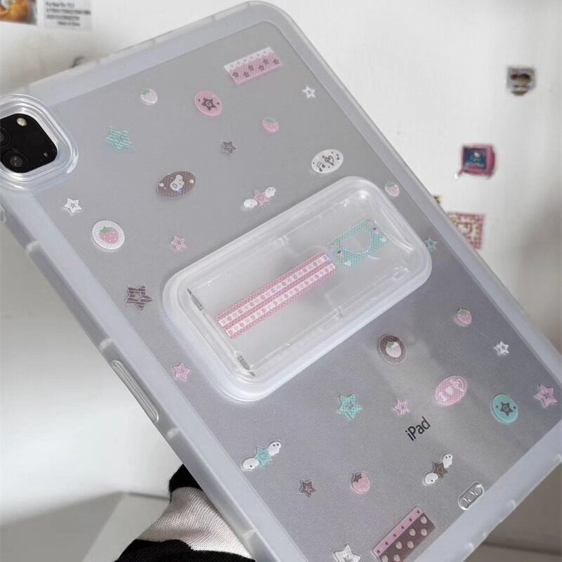 ins韩风镭射草莓音符透明支架可调节适用苹果三星华为2025ipadpro保护套平板Air34678壳第十代小米Matepad女S - 寻壳Studio