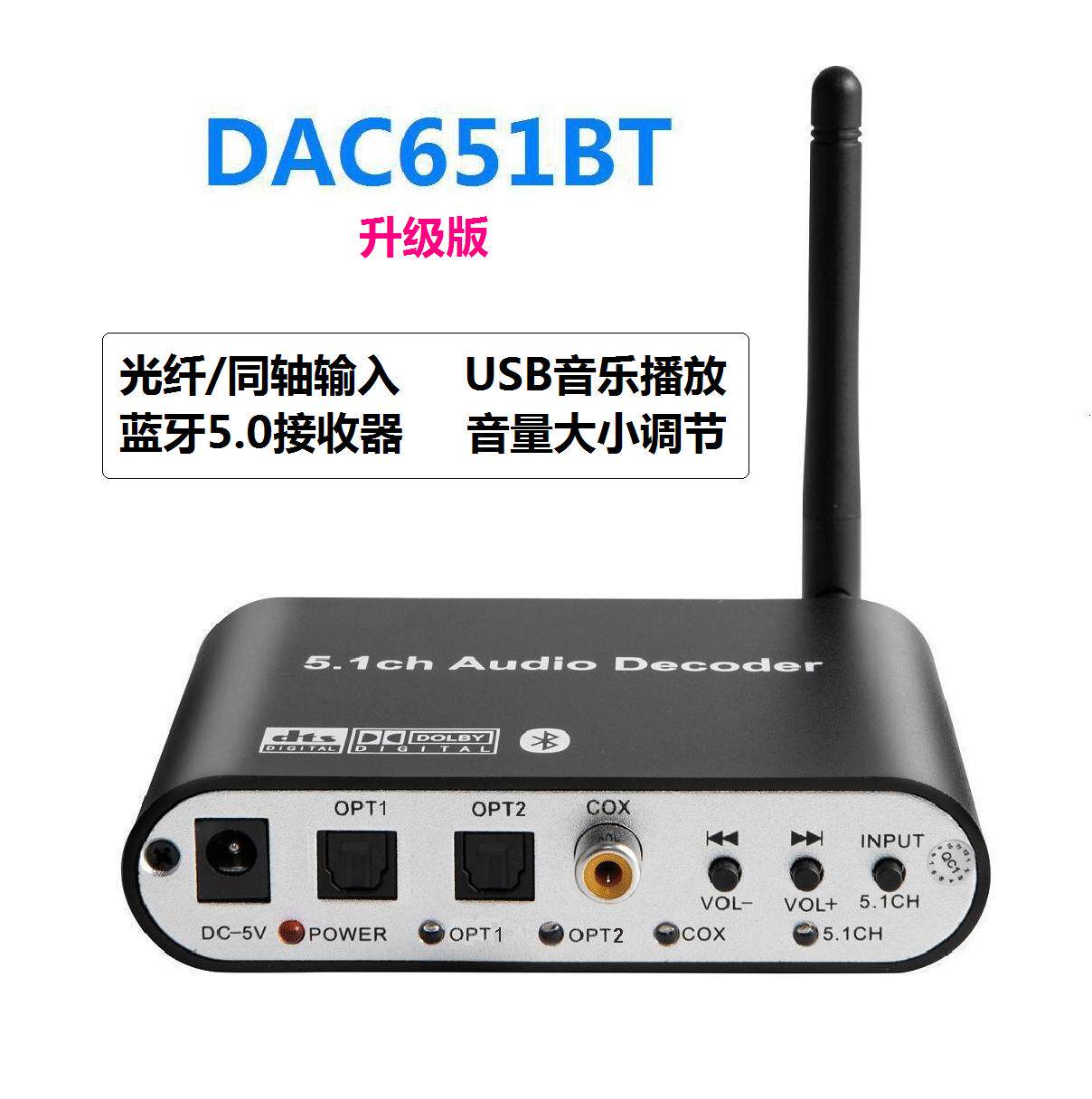 您的位置:安康生态农业开发平台  >   >  DTS杜比5.1音频解码器发烧蓝牙接收ARC光纤同轴U盘播放电脑声卡