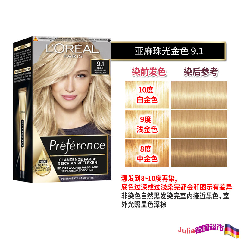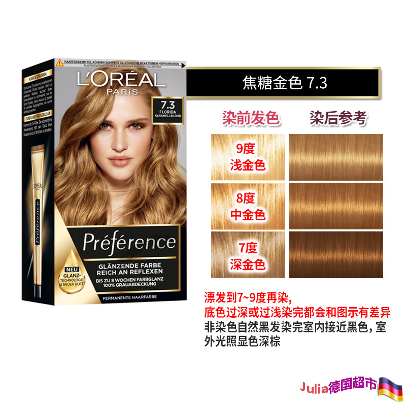 法国原装欧莱雅preference精油染发膏剂焦糖亚麻珠光金色护发柔顺 - Julia德国超市