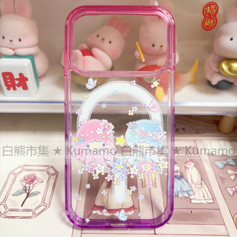 适用iphone17promax苹果17手机壳MagSafe磁吸16渐变15撞色14透明16e保护套华为三星s25ultra蝴蝶花卡通双子星 - 白熊市集 领劵下单更优惠