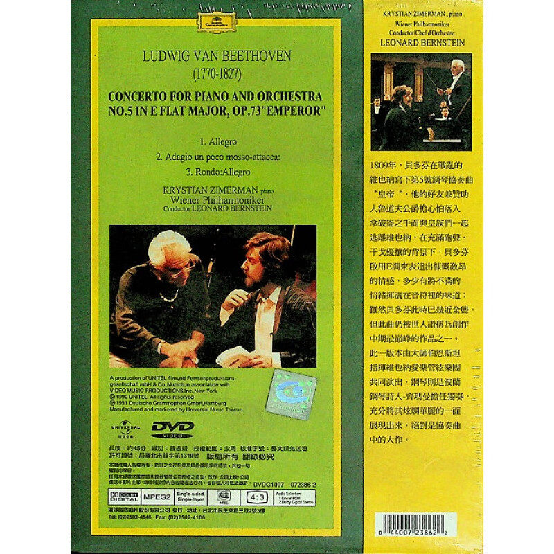 【原装进口】贝多芬 第5钢琴协奏曲 齐默曼 古典 DVD 723862 - 中国图书广州图书音像专营