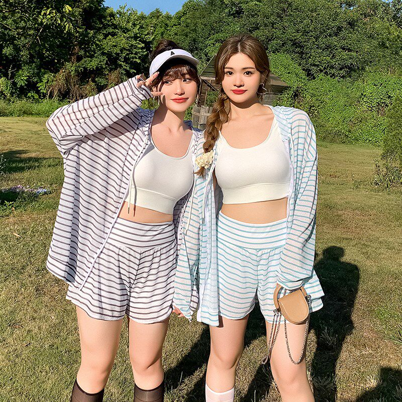 大码泳衣女夏g分体三件套胖mm遮肉显瘦泡温泉学生长袖罩衫2024新 - 土福阁商城的小店91