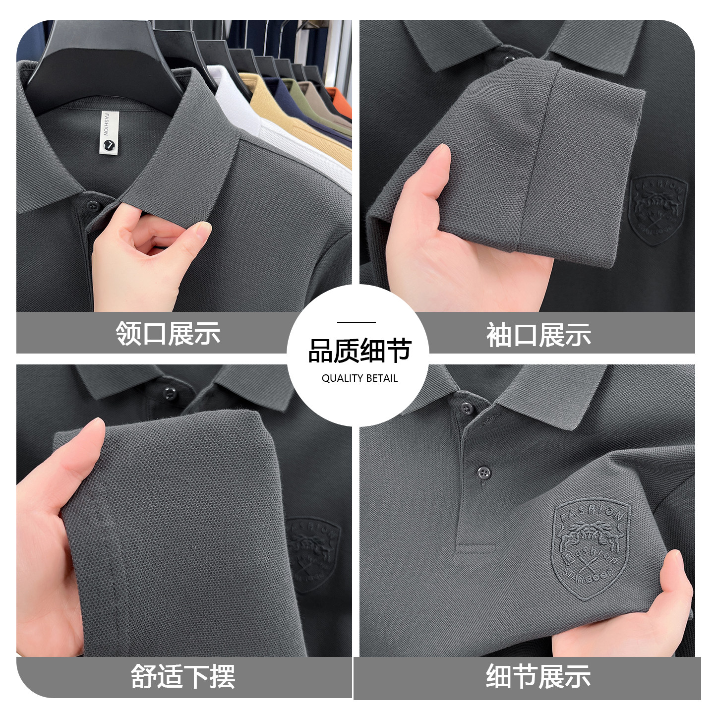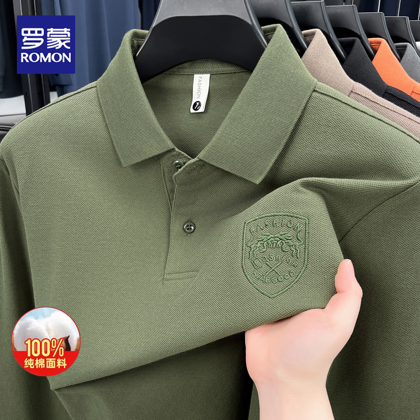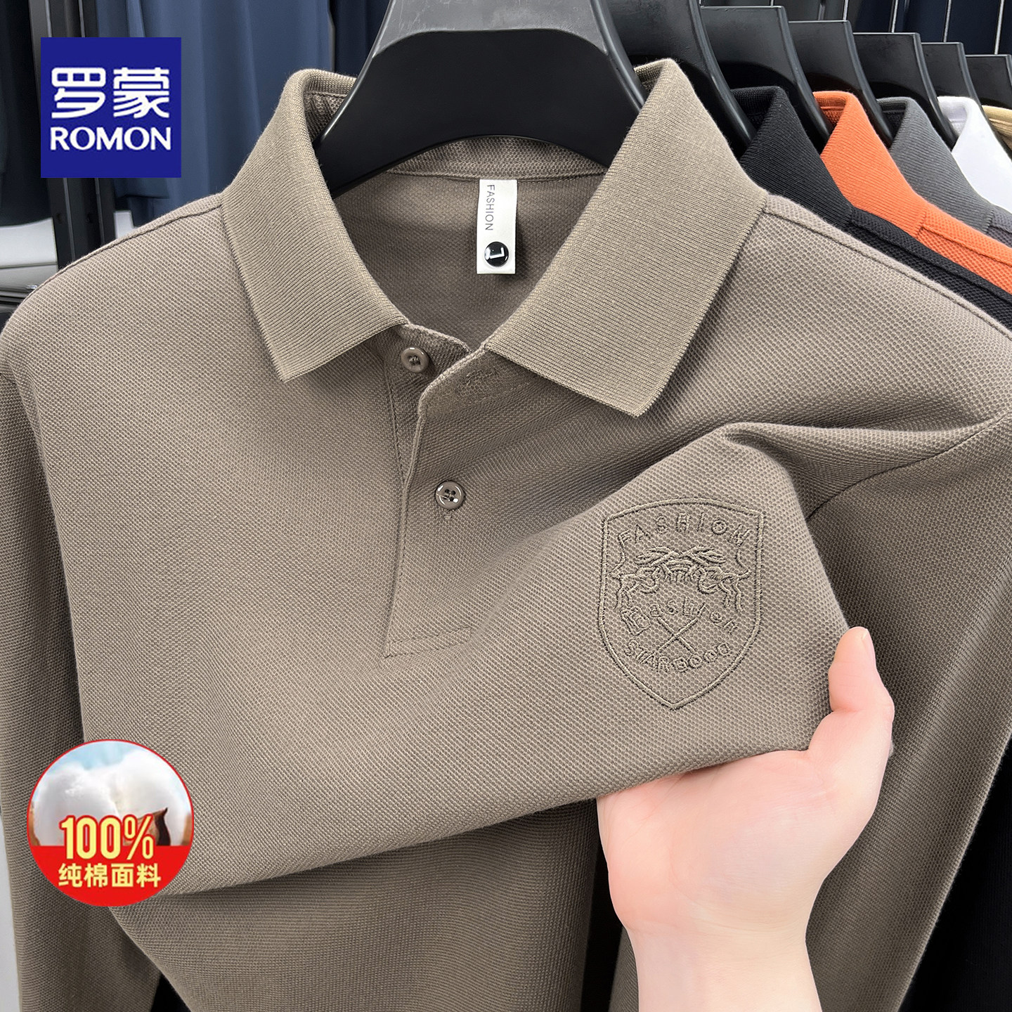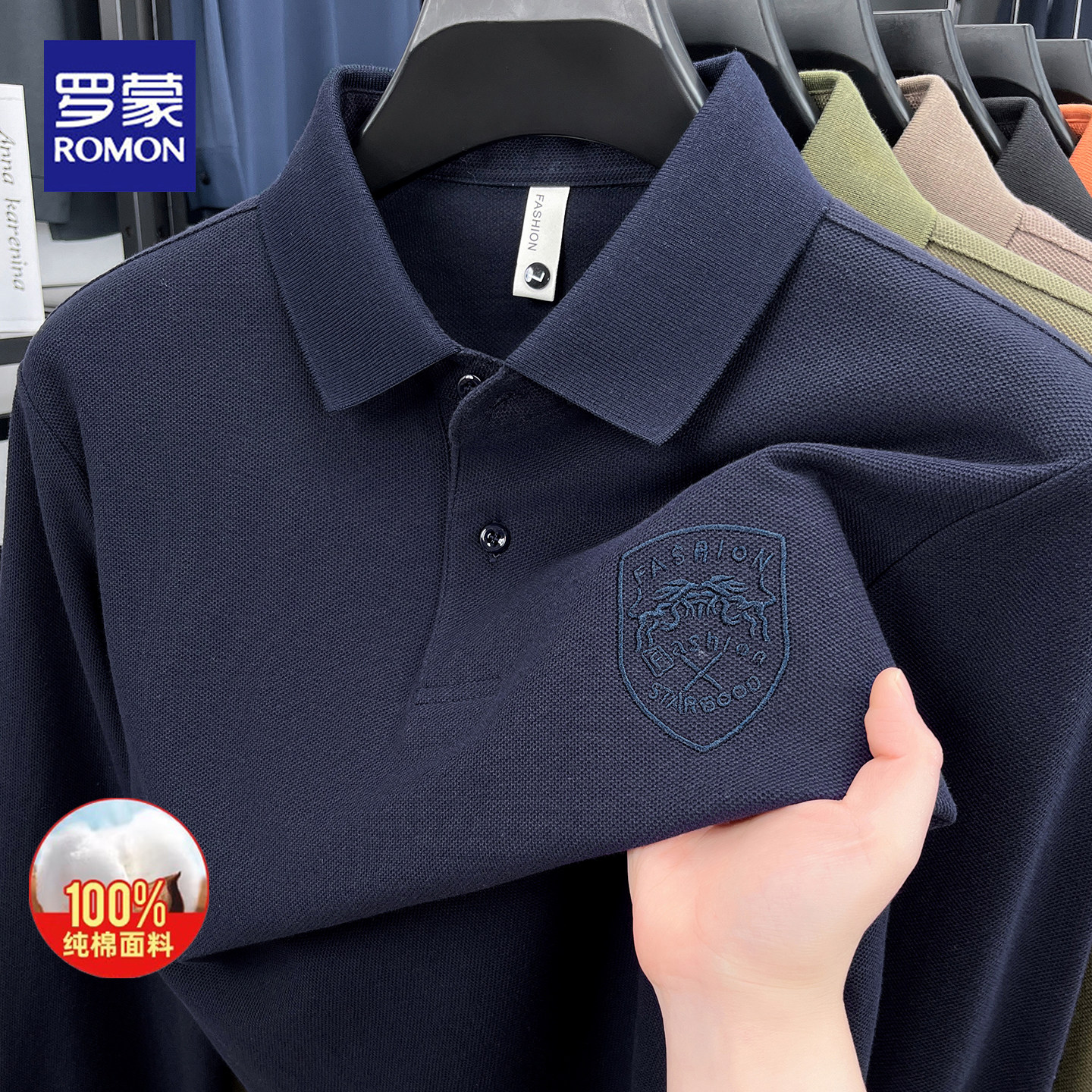 罗蒙2026春秋新款纯棉长袖POLO翻领商务休闲百搭中青年刺绣上衣男 - 罗蒙品牌男装工厂店