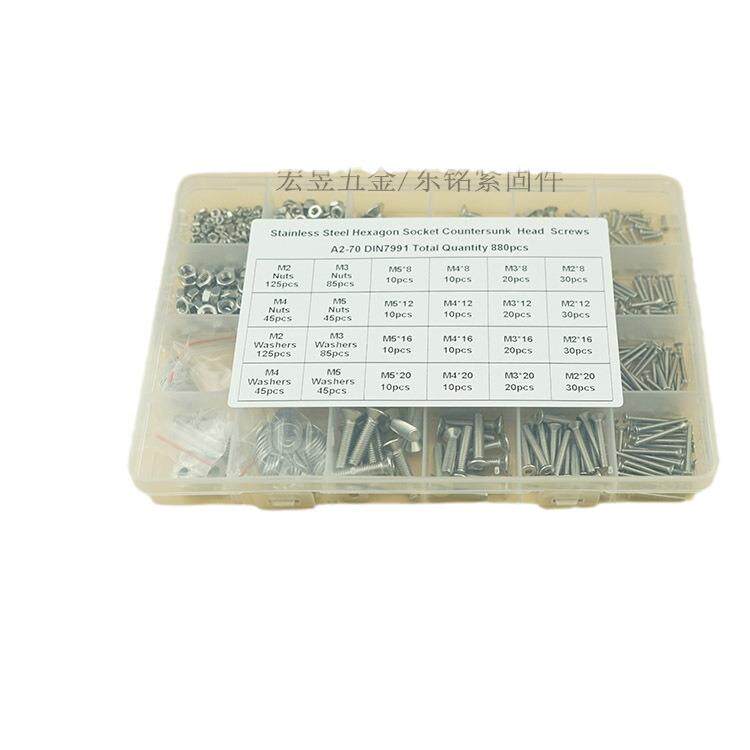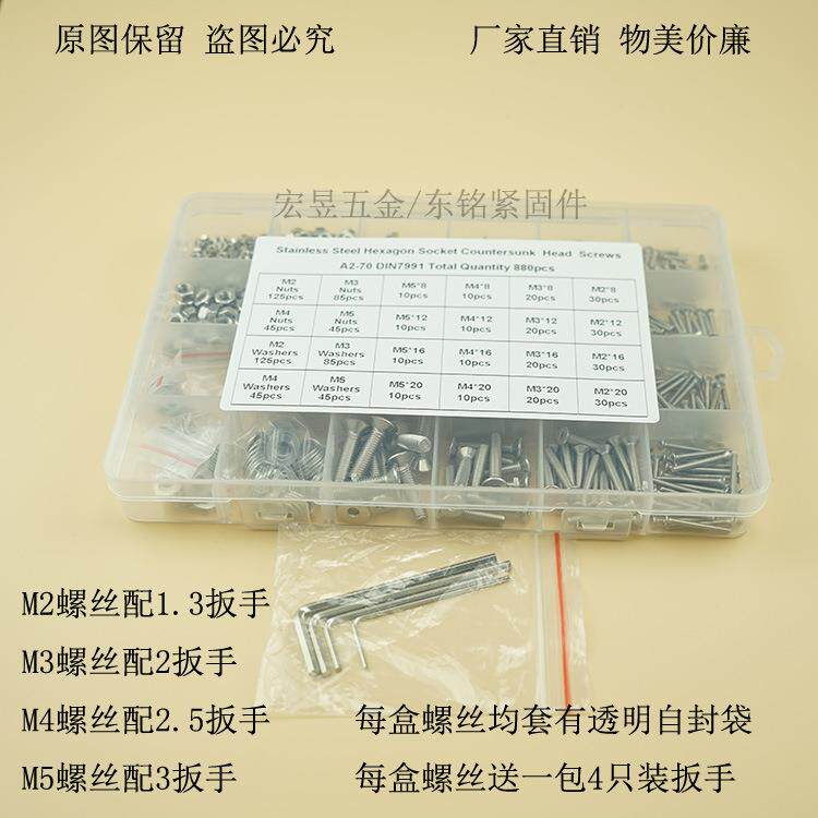 880pcs M2 M3 M4 M5不锈钢304 沉内六角螺丝配螺母平垫组合套装 - 朴悦商贸城的小店92